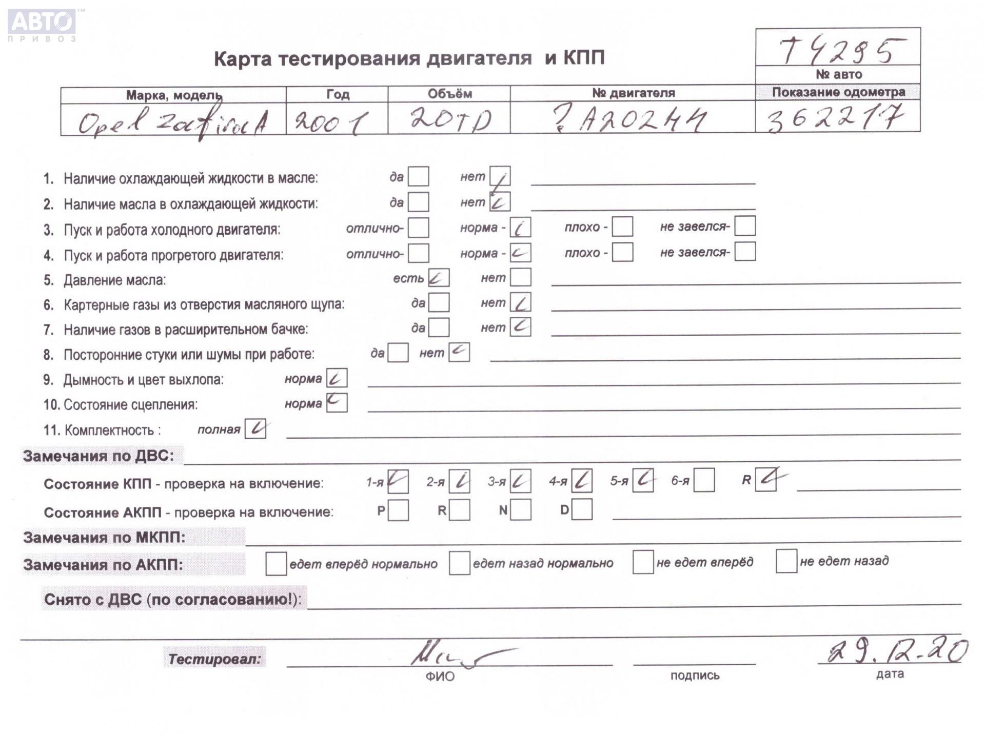| Марка / Модель / Год: | Opel Zafira A (1999-2005) 2001 |