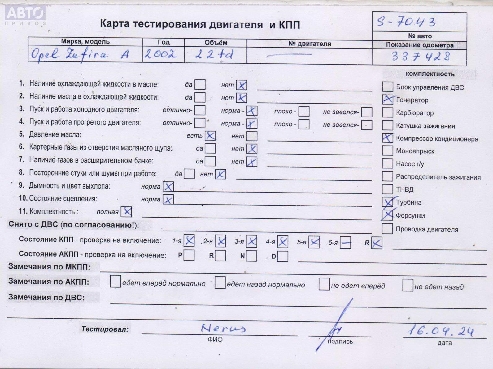 | Марка / Модель / Год: | Opel Zafira A (1999-2005) 2002 |