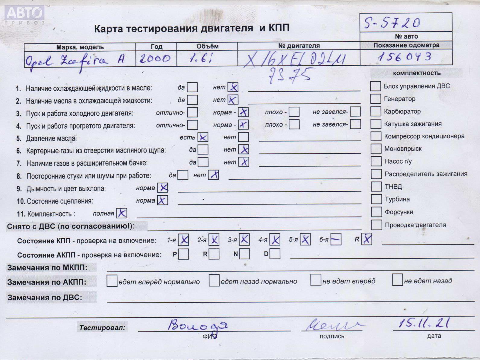 | Марка / Модель / Год: | Opel Zafira A (1999-2005) 2000 |
