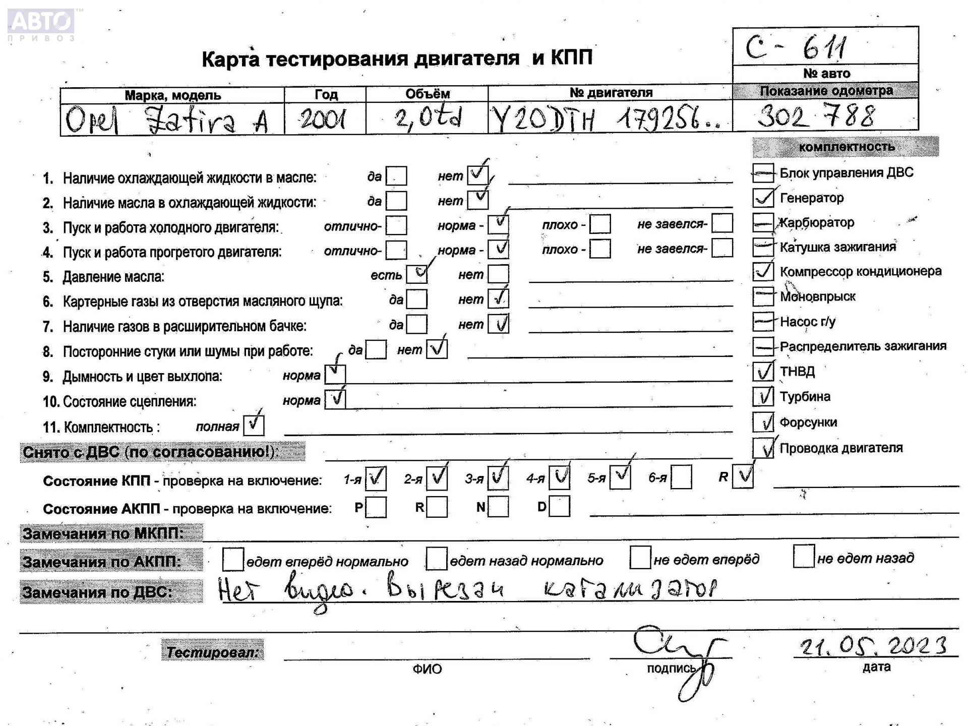 | Марка / Модель / Год: | Opel Zafira A (1999-2005) 2001 |