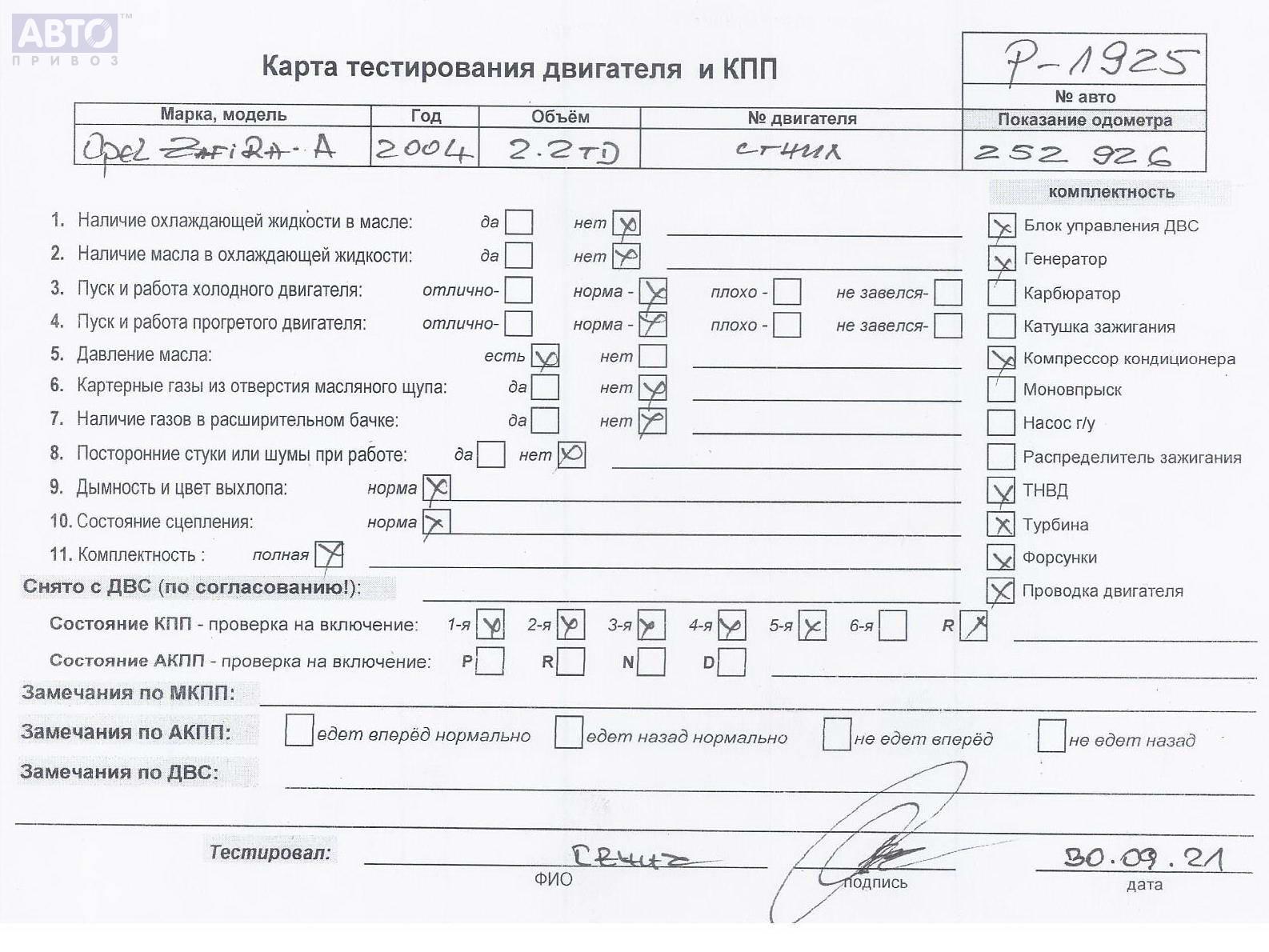 | Марка / Модель / Год: | Opel Zafira A (1999-2005) 2004 |
