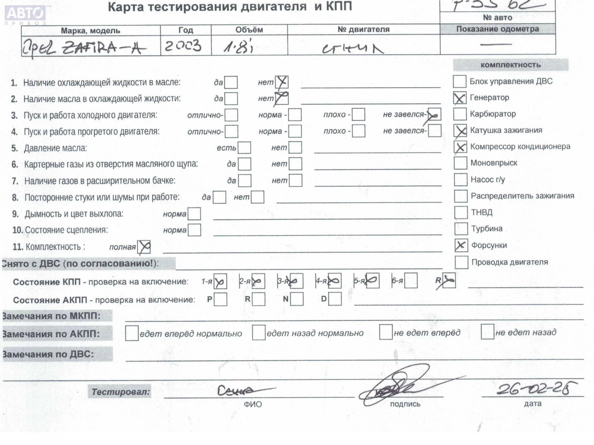 | Марка / Модель / Год: | Opel Zafira A (1999-2005) 2005 |