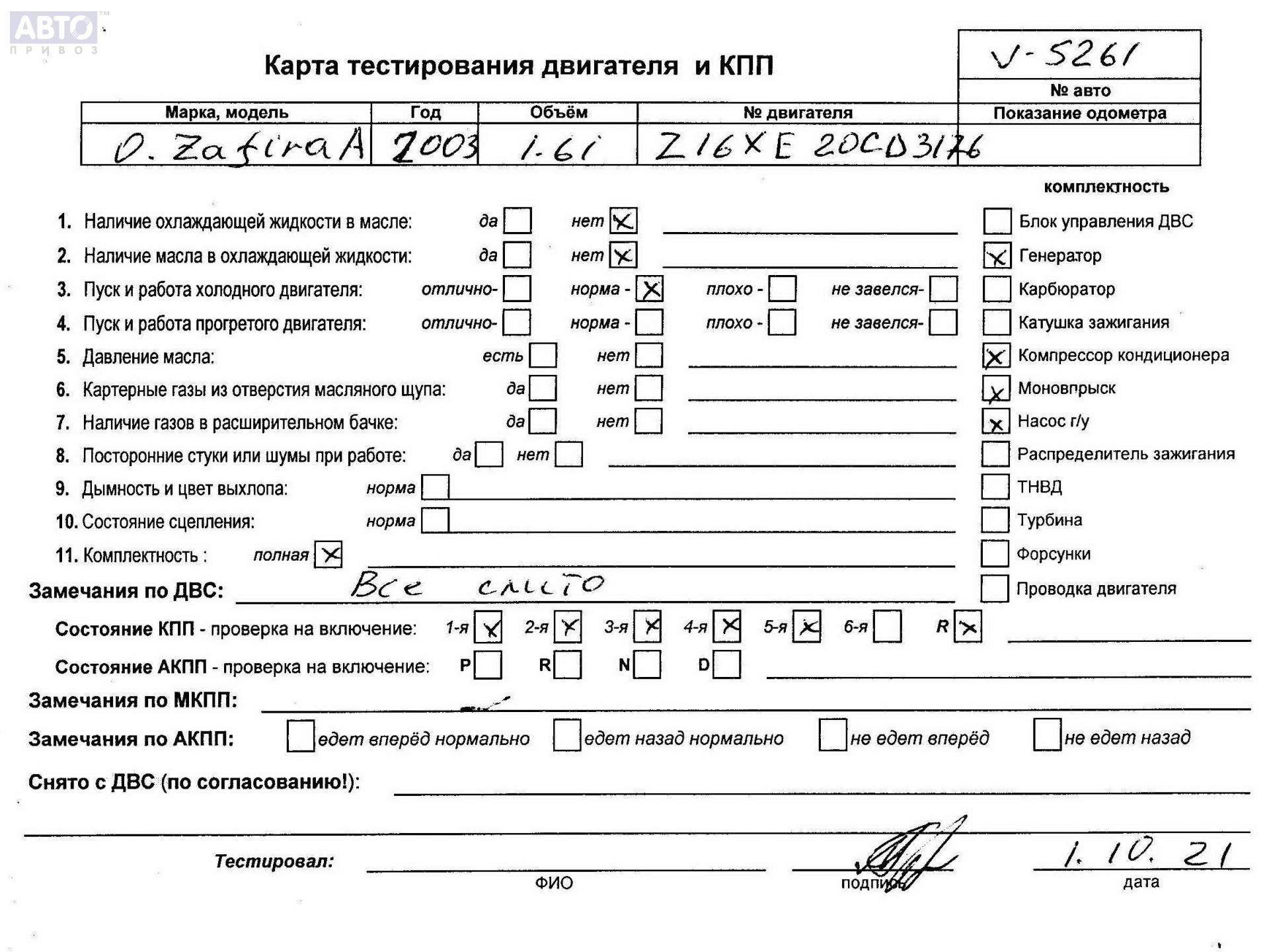 | Марка / Модель / Год: | Opel Zafira A (1999-2005) 2003 |