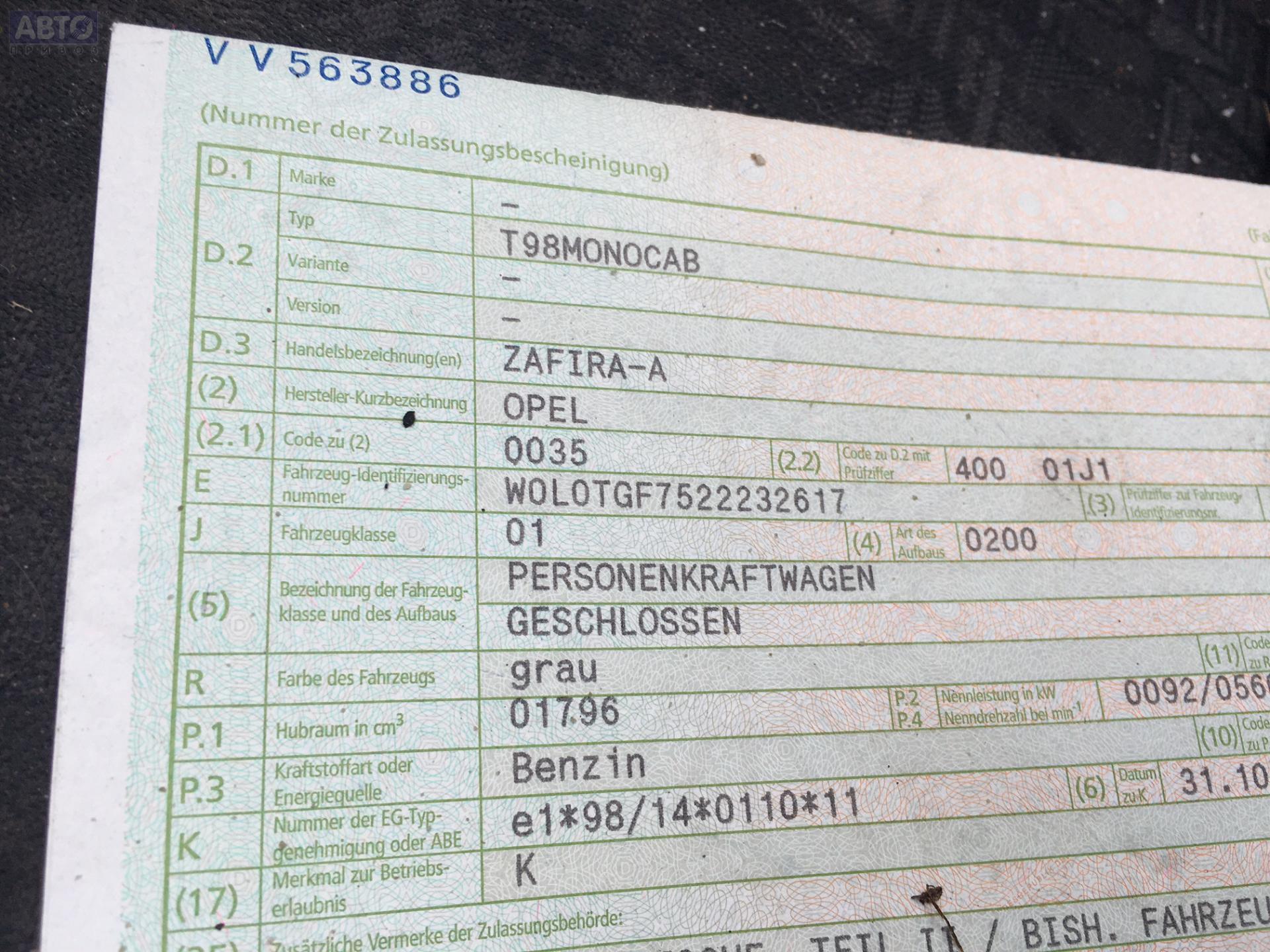 | Марка / Модель / Год: | Opel Zafira A (1999-2005) 2002 |