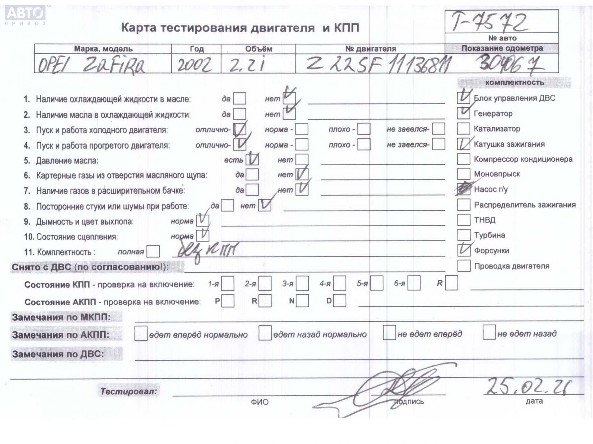 | Марка / Модель / Год: | Opel Zafira A (1999-2005) 2002 |