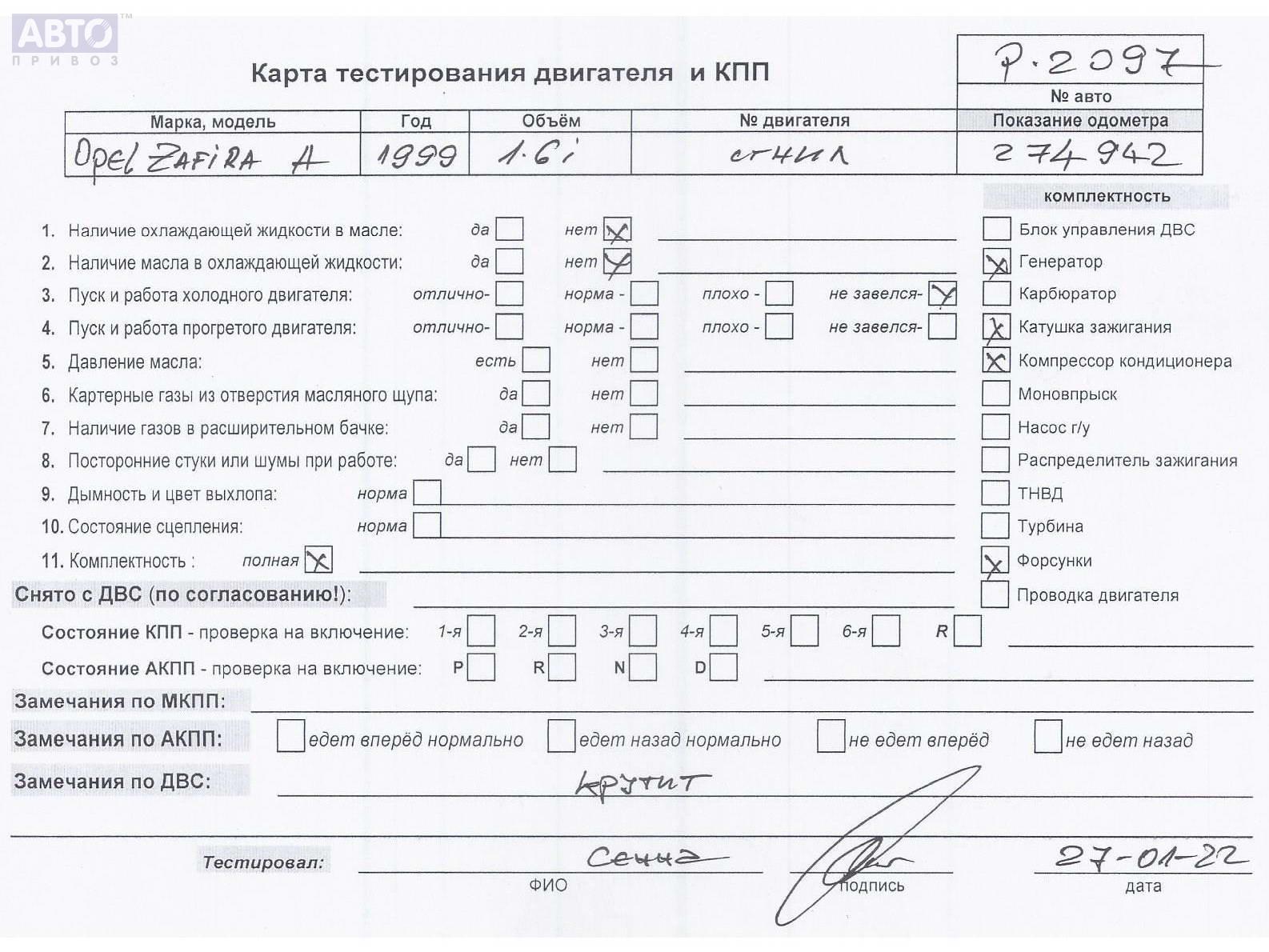 | Автомобиль / VIN: | P2097 W0L0TGF75X2276031 |