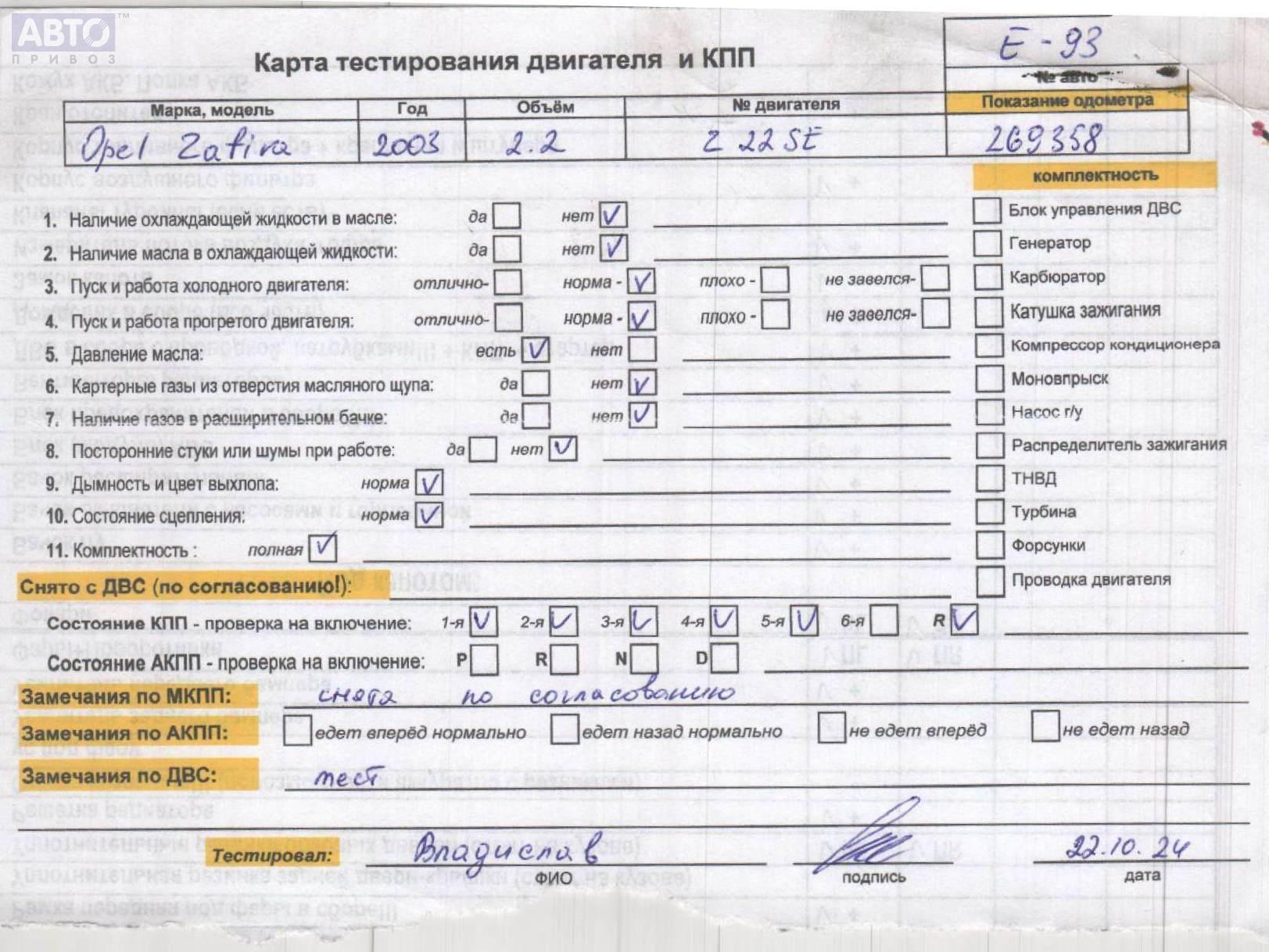 | Марка / Модель / Год: | Opel Zafira A (1999-2005) 2003 |