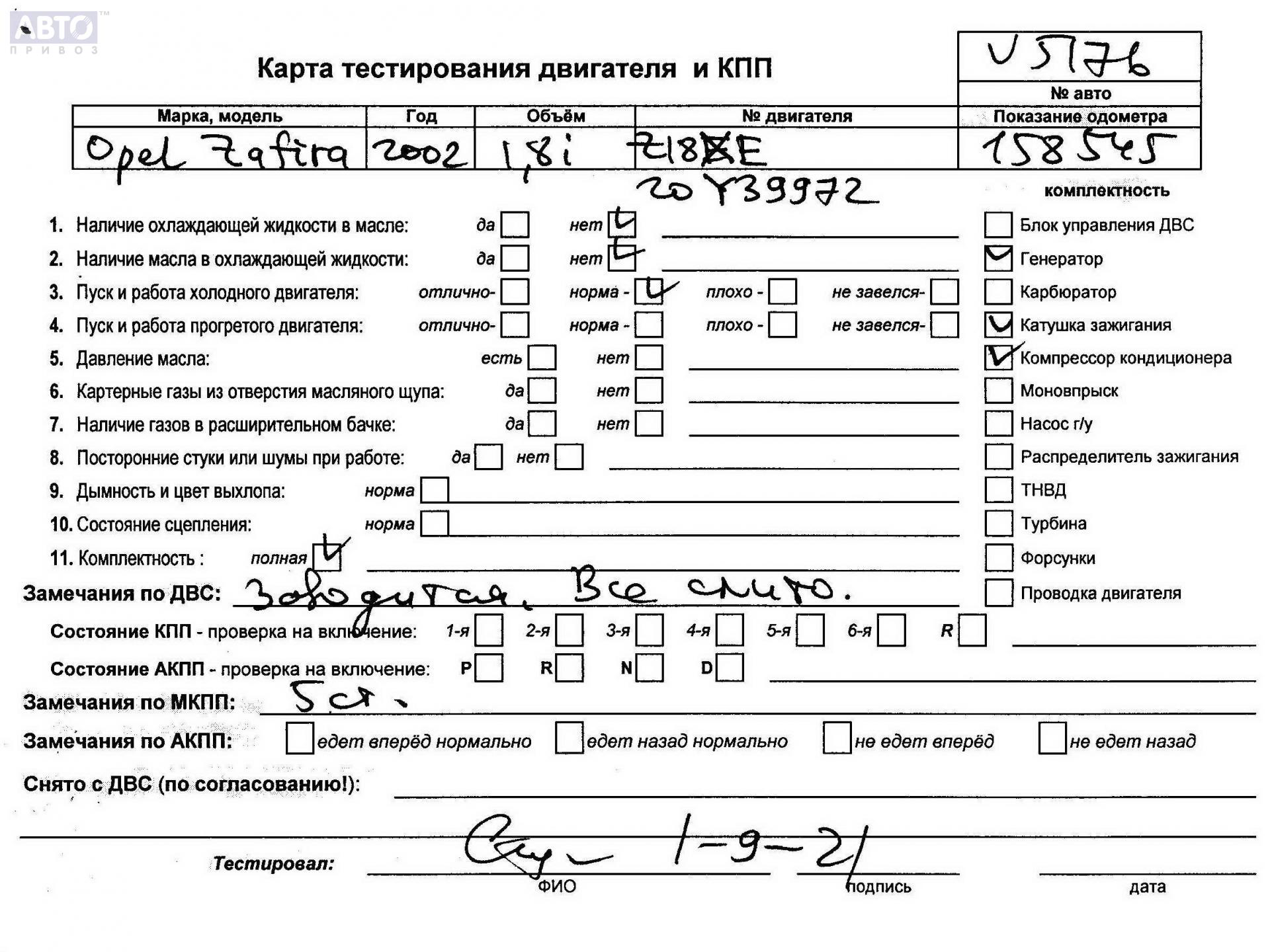 | Марка / Модель / Год: | Opel Zafira A (1999-2005) 2002 |