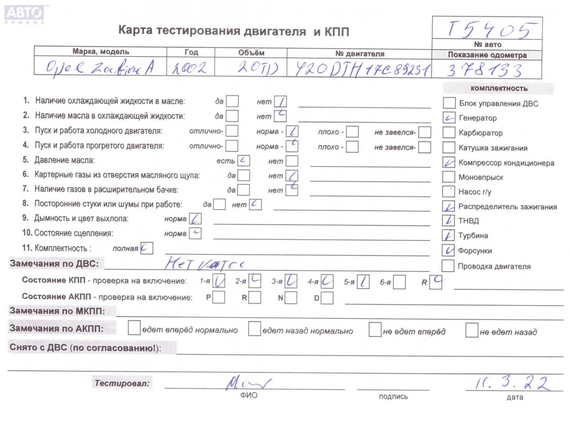 | Марка / Модель / Год: | Opel Zafira A (1999-2005) 2002 |