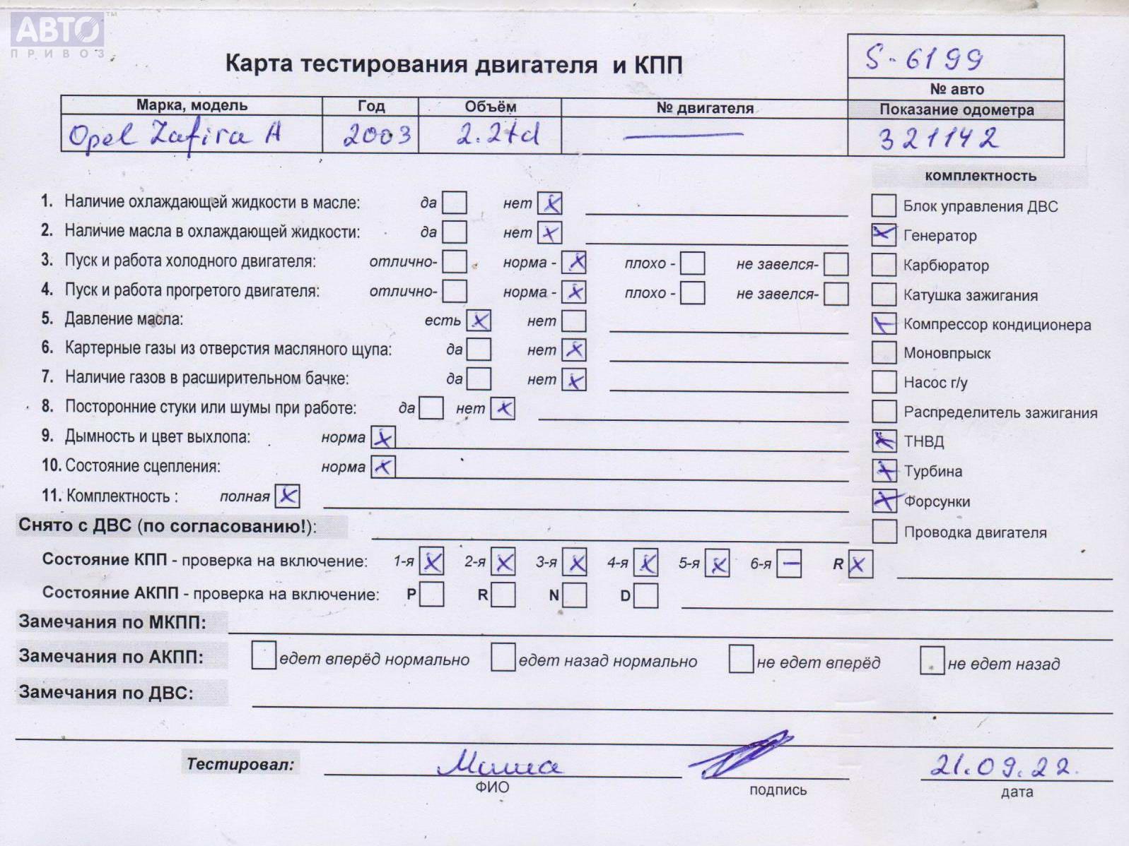 | Марка / Модель / Год: | Opel Zafira A (1999-2005) 2003 |