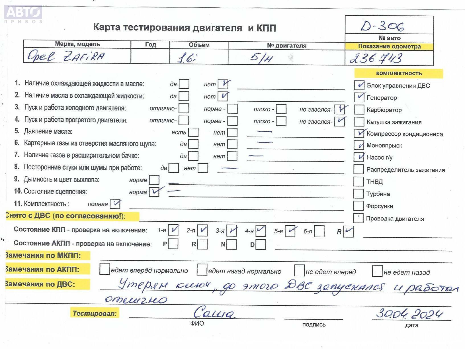| Марка / Модель / Год: | Opel Zafira A (1999-2005) 2000 |