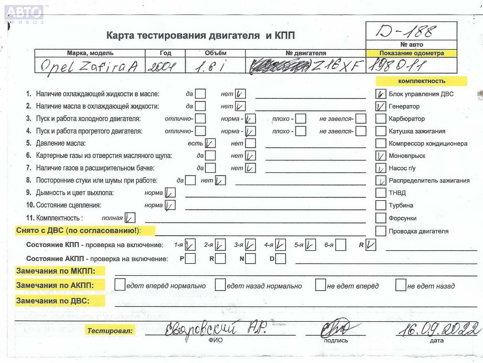 | Марка / Модель / Год: | Opel Zafira A (1999-2005) 2001 |