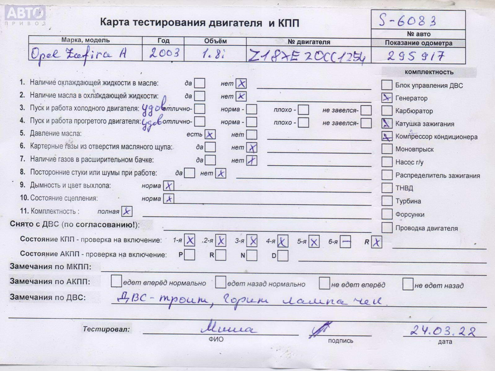 | Марка / Модель / Год: | Opel Zafira A (1999-2005) 2003 |