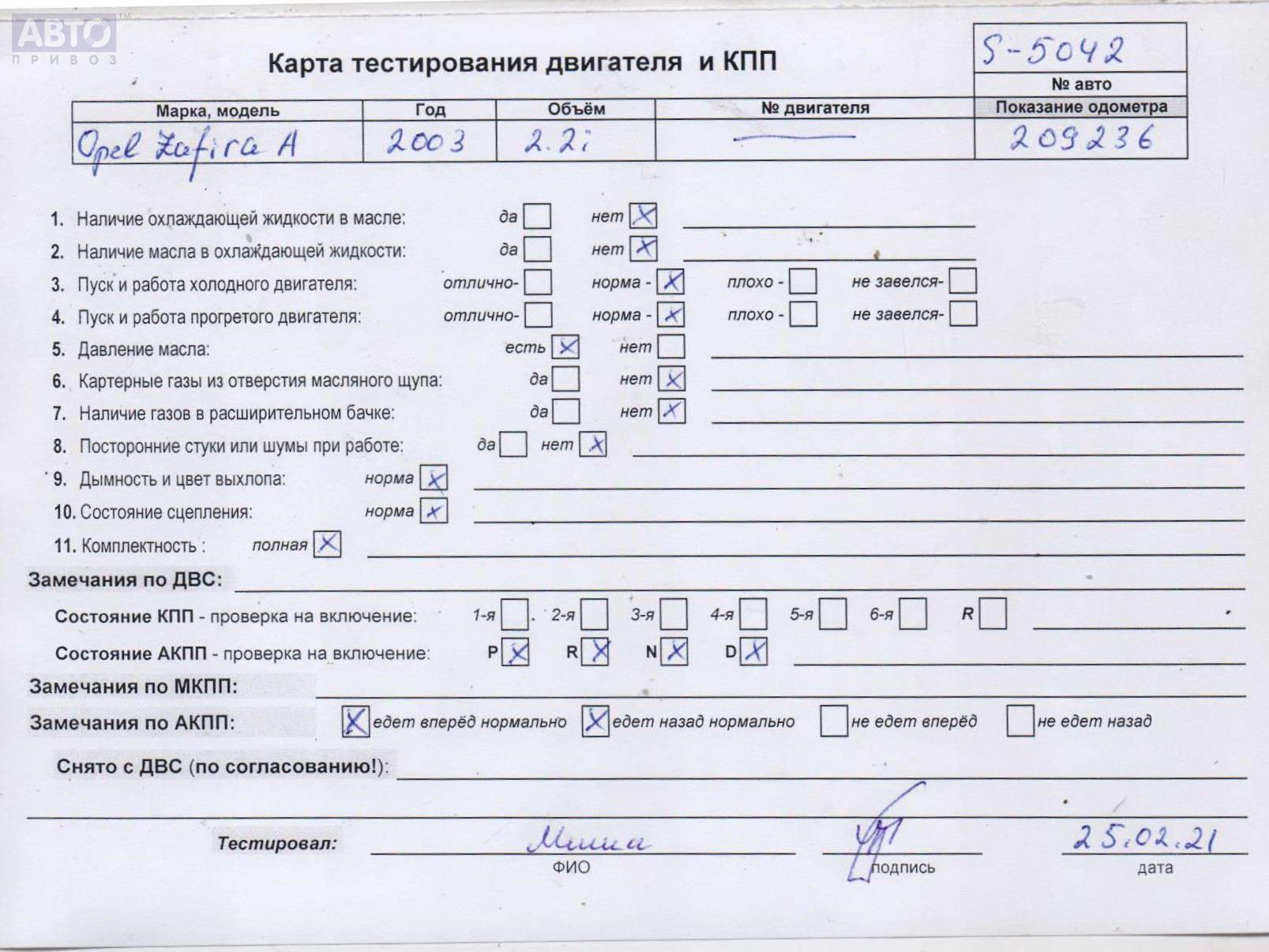 | Марка / Модель / Год: | Opel Zafira A (1999-2005) 2003 |