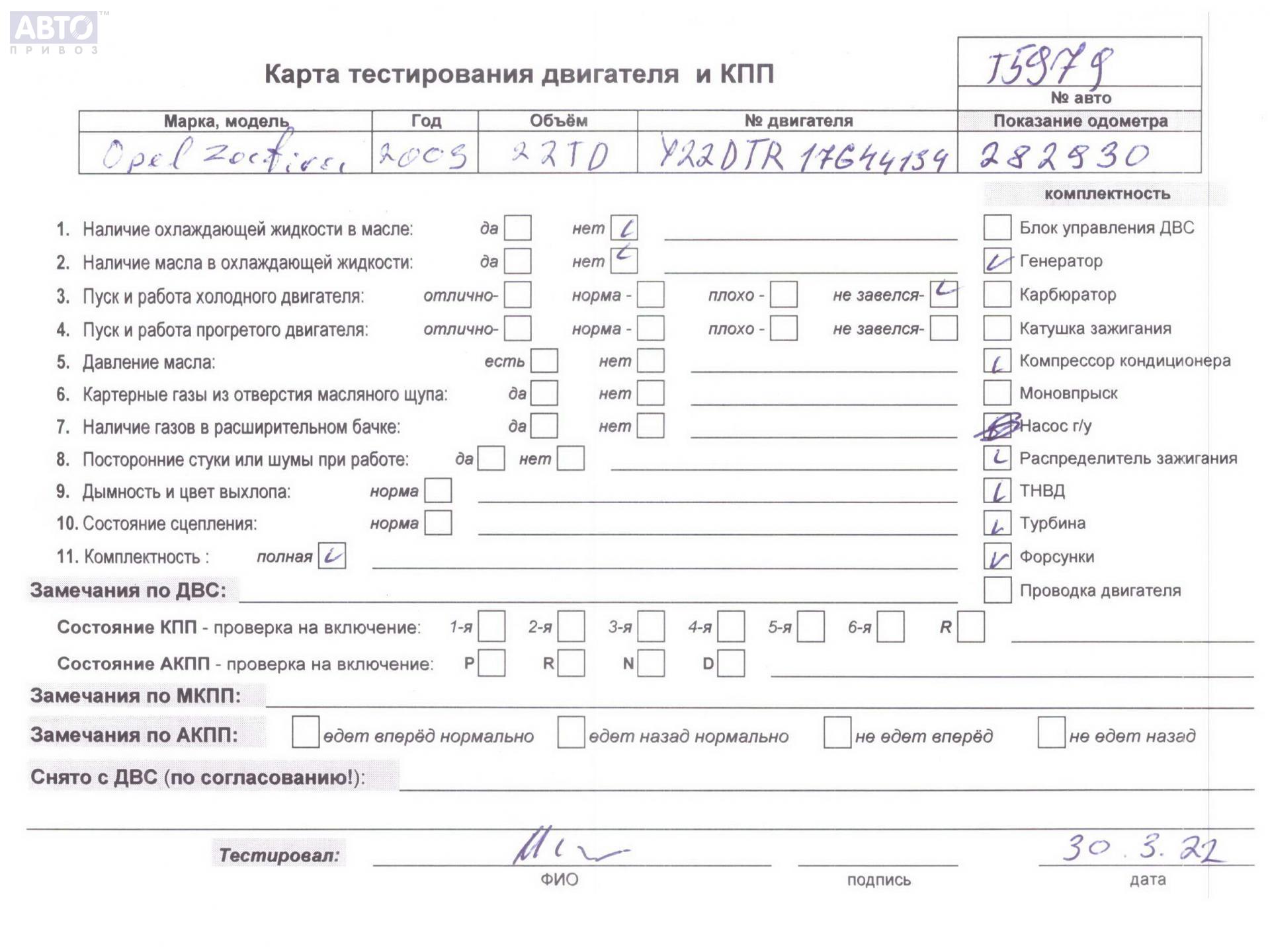 | Марка / Модель / Год: | Opel Zafira A (1999-2005) 2003 |