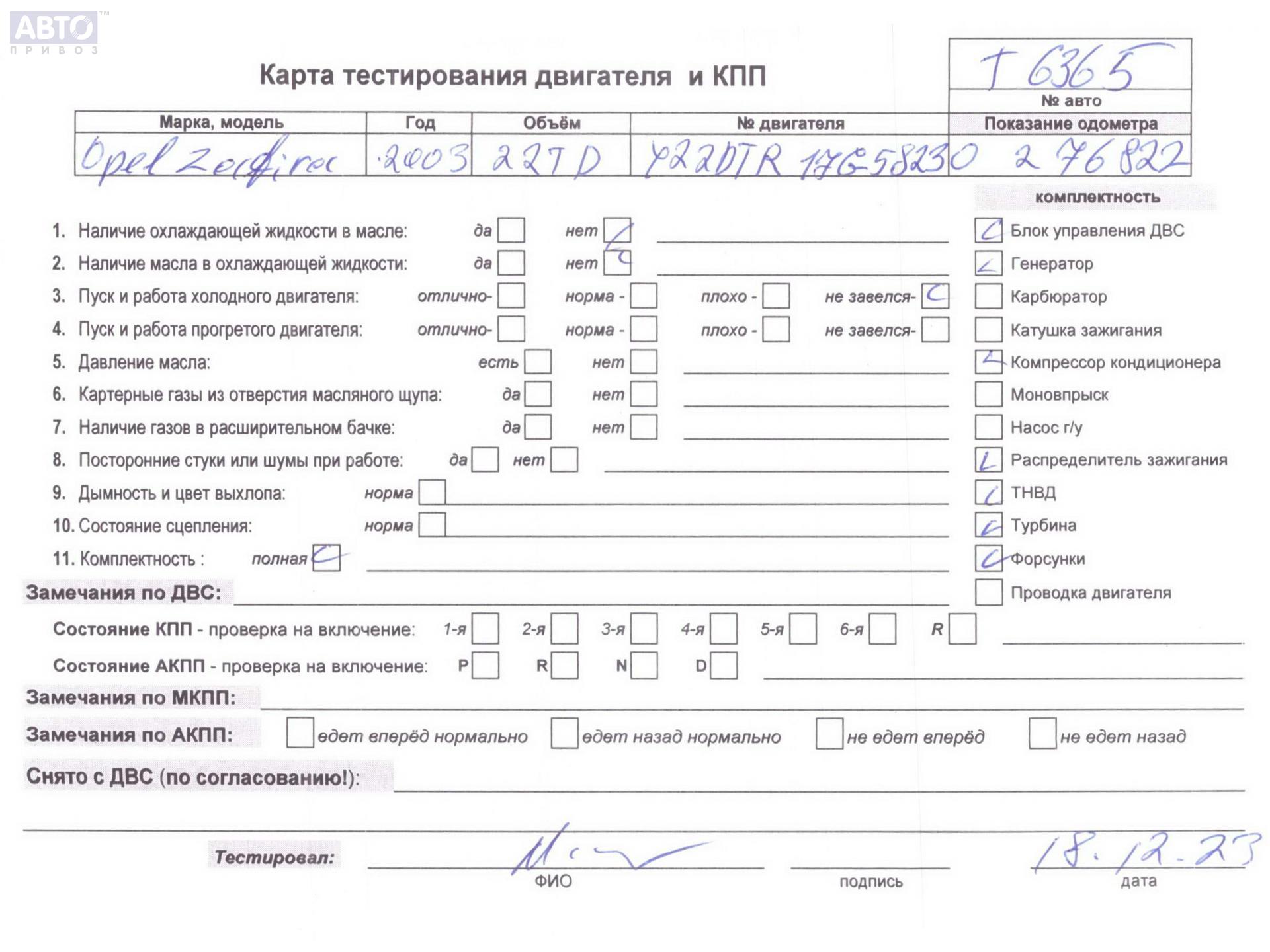 | Марка / Модель / Год: | Opel Zafira A (1999-2005) 2003 |
