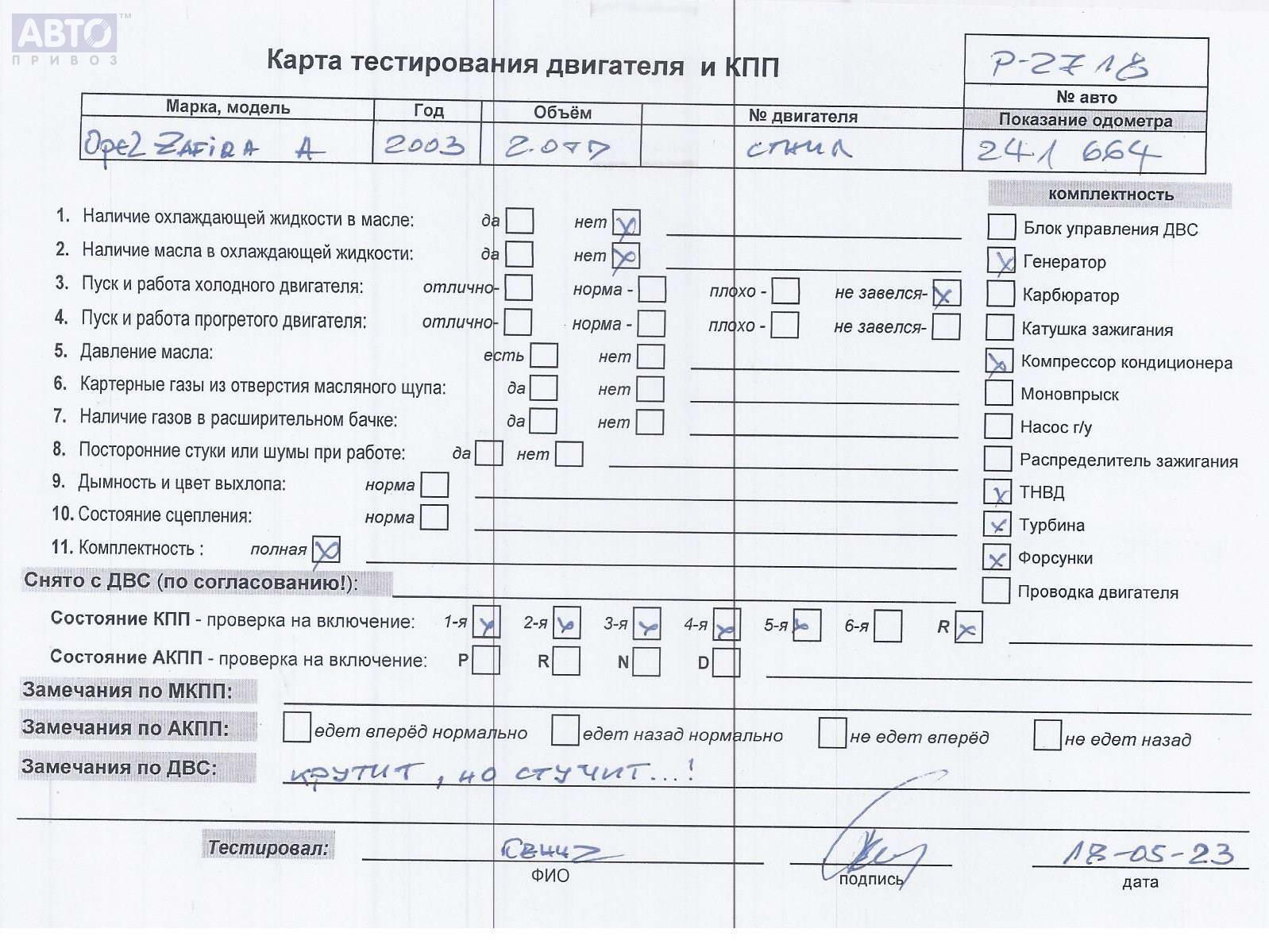 | Марка / Модель / Год: | Opel Zafira A (1999-2005) 2003 |