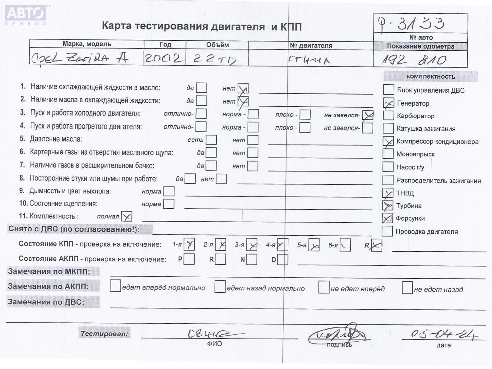 | Марка / Модель / Год: | Opel Zafira A (1999-2005) 2002 |