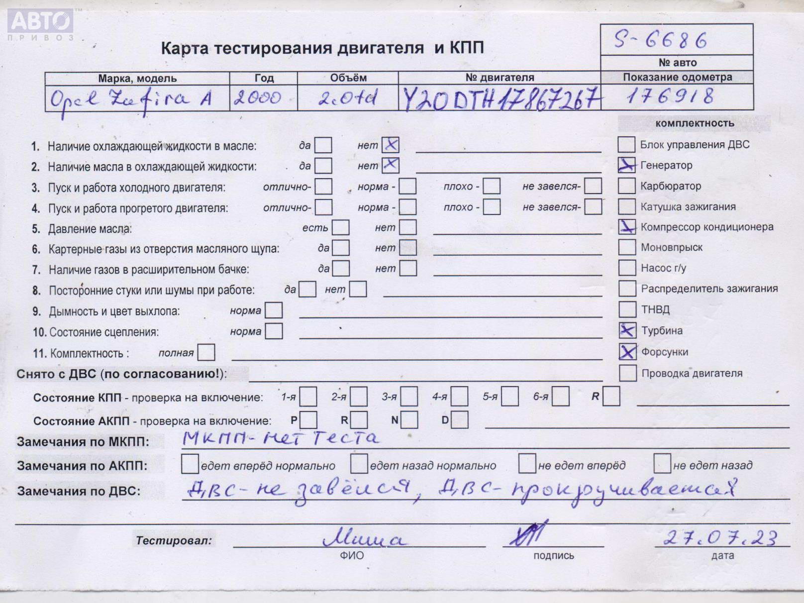 | Марка / Модель / Год: | Opel Zafira A (1999-2005) 2000 |