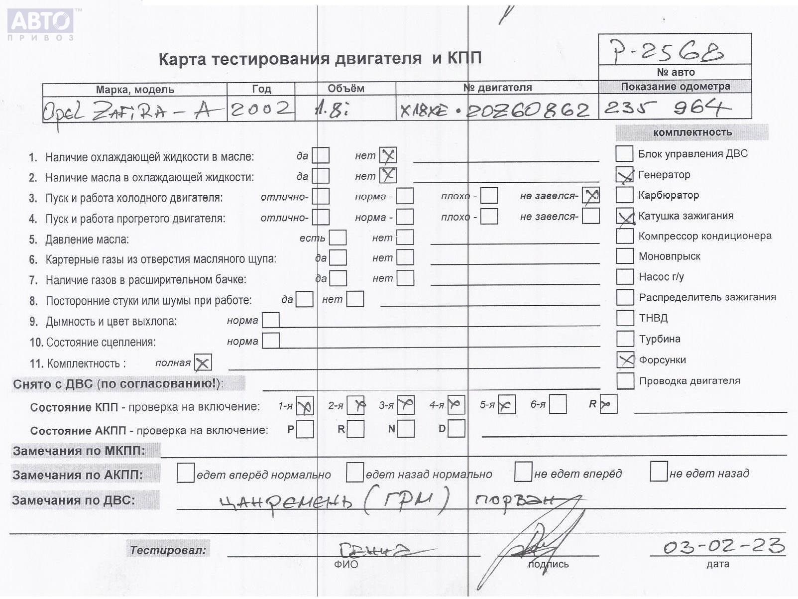 | Марка / Модель / Год: | Opel Zafira A (1999-2005) 2002 |