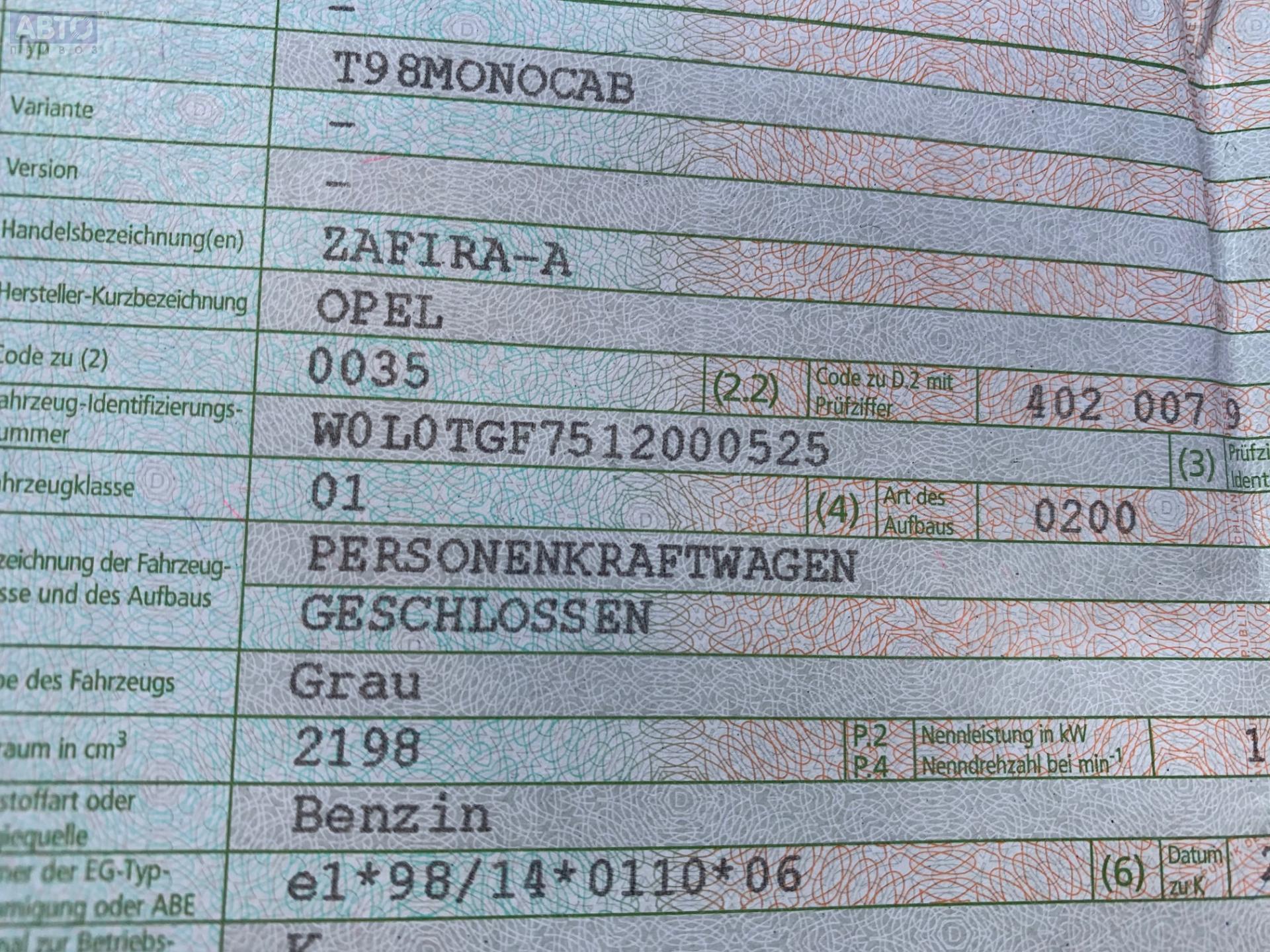 | Марка / Модель / Год: | Opel Zafira A (1999-2005) 2000 |