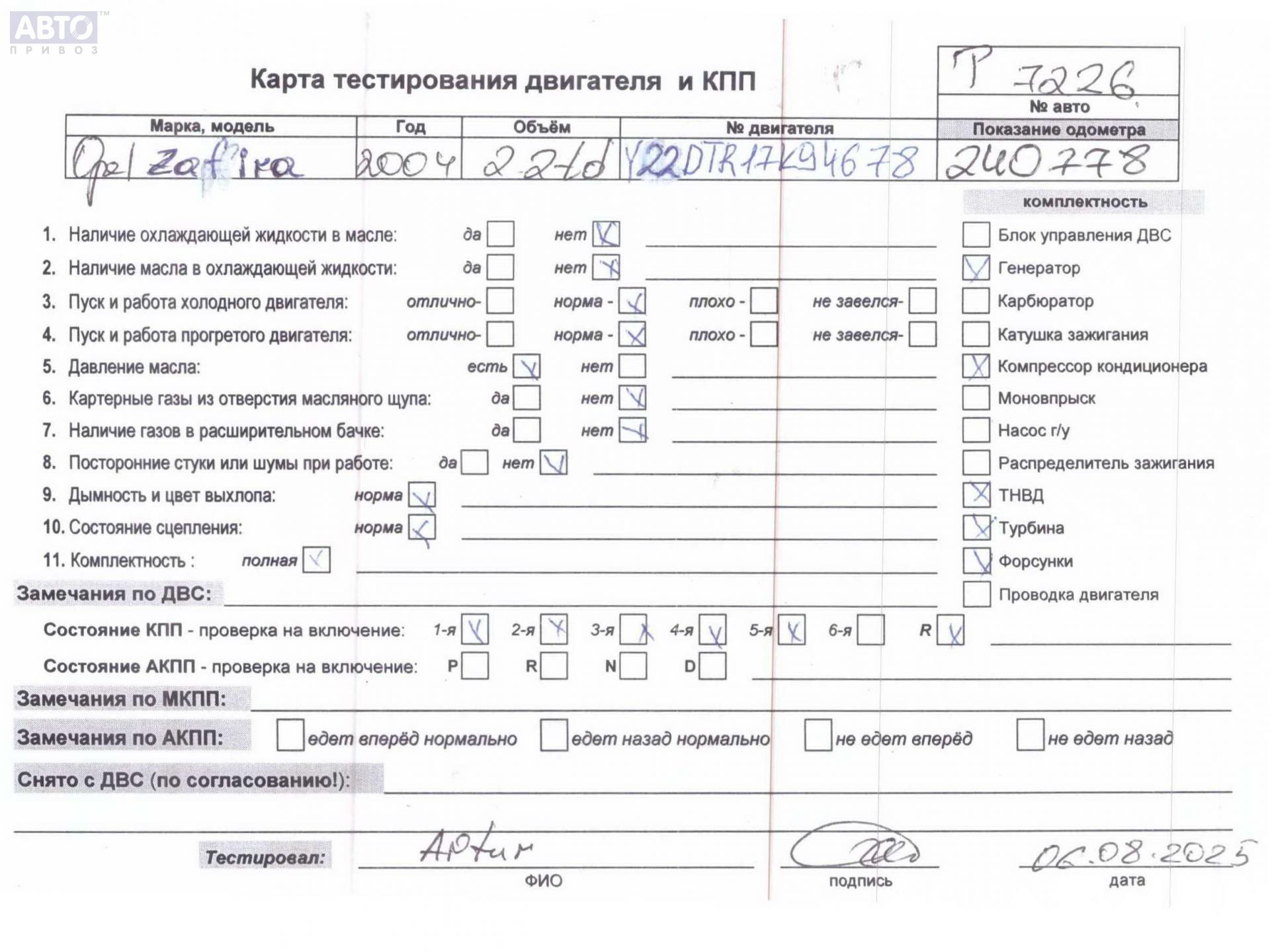 | Марка / Модель / Год: | Opel Zafira A (1999-2005) 2004 |