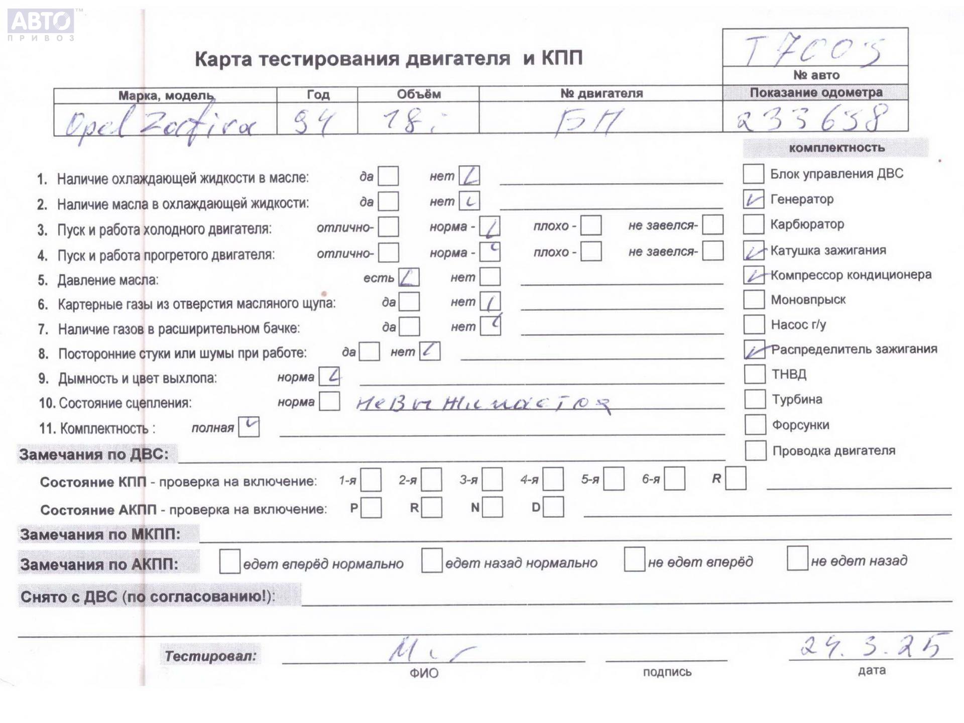 | Марка / Модель / Год: | Opel Zafira A (1999-2005) 2004 |