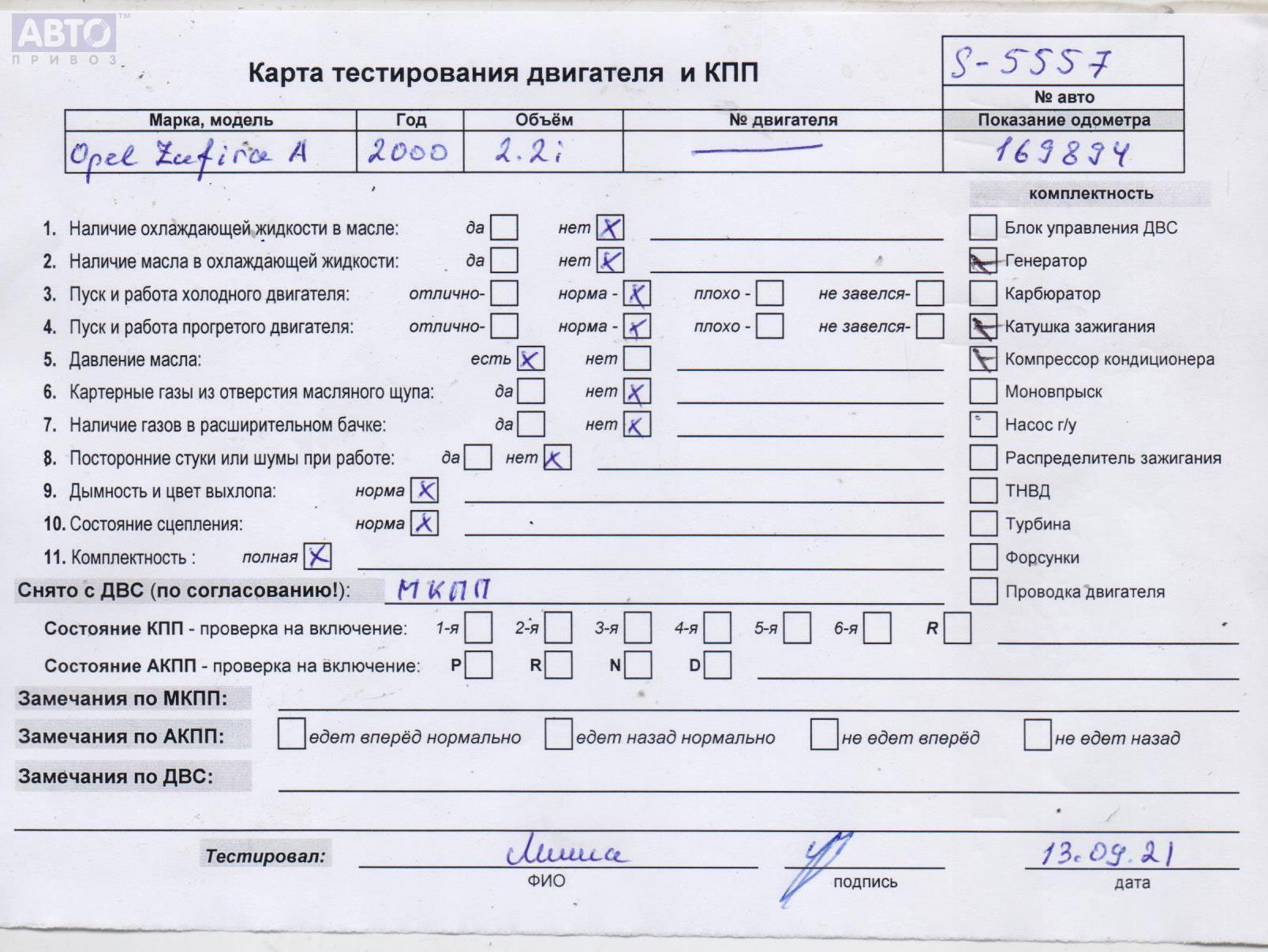 | Марка / Модель / Год: | Opel Zafira A (1999-2005) 2001 |