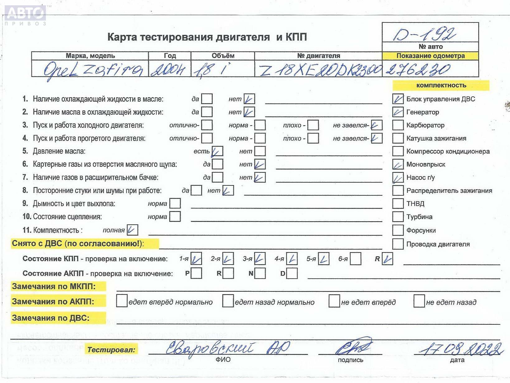 | Марка / Модель / Год: | Opel Zafira A (1999-2005) 2004 |
