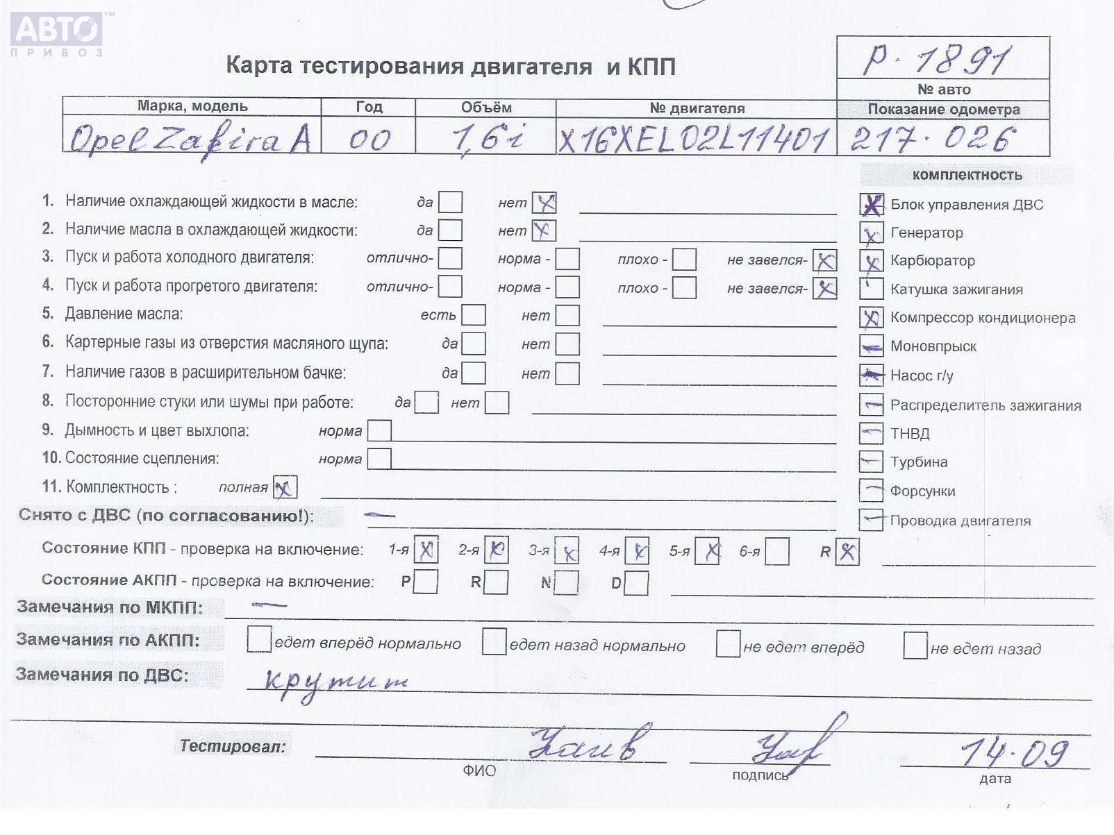 | Марка / Модель / Год: | Opel Zafira A (1999-2005) 2000 |