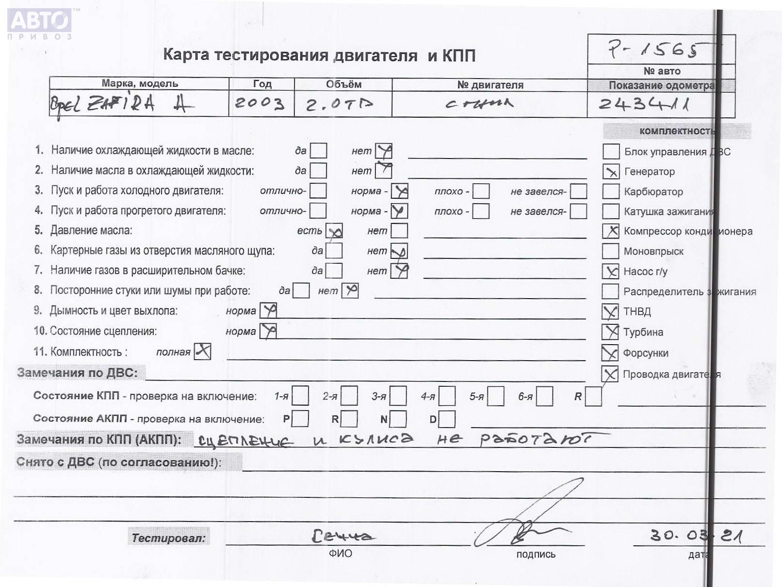 | Марка / Модель / Год: | Opel Zafira A (1999-2005) 2004 |