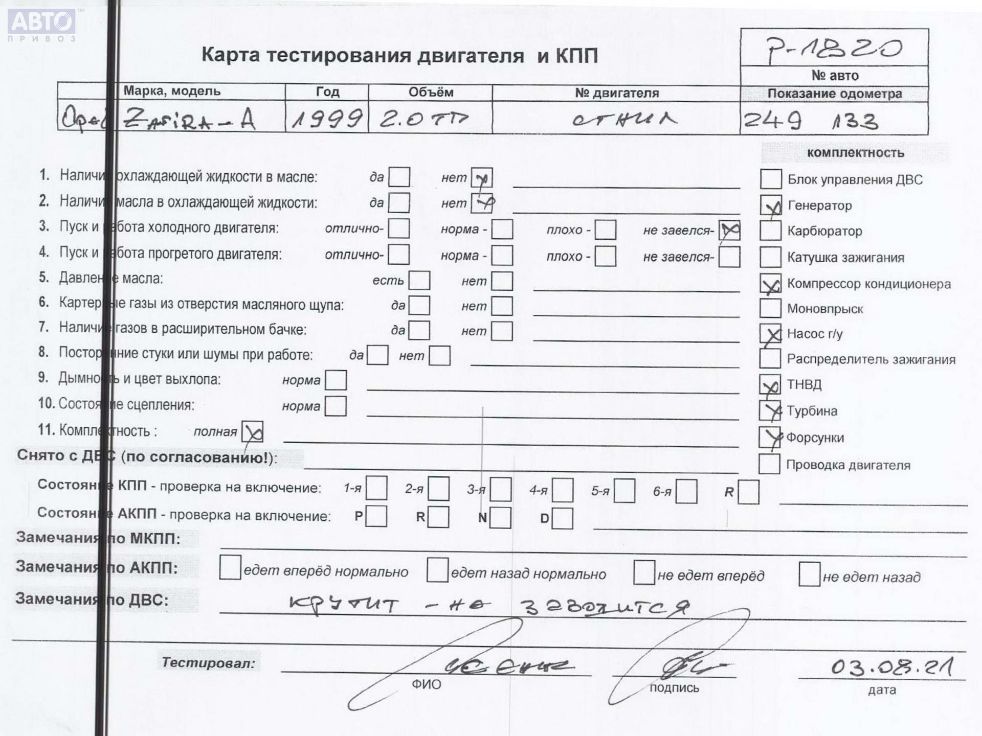 | Марка / Модель / Год: | Opel Zafira A (1999-2005) 1999 |