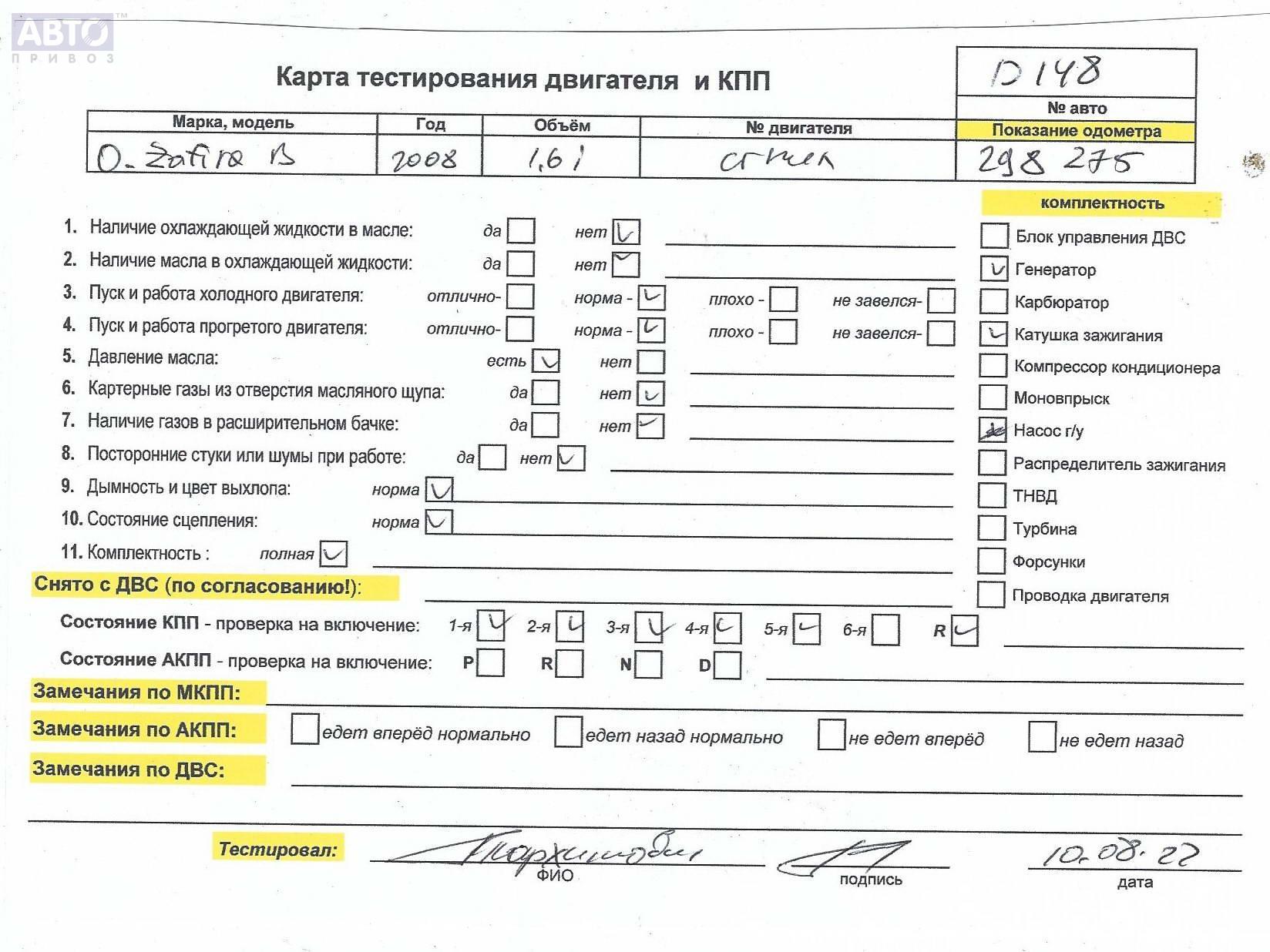 | Марка / Модель / Год: | Opel Zafira B (2004-2014) 2008 |