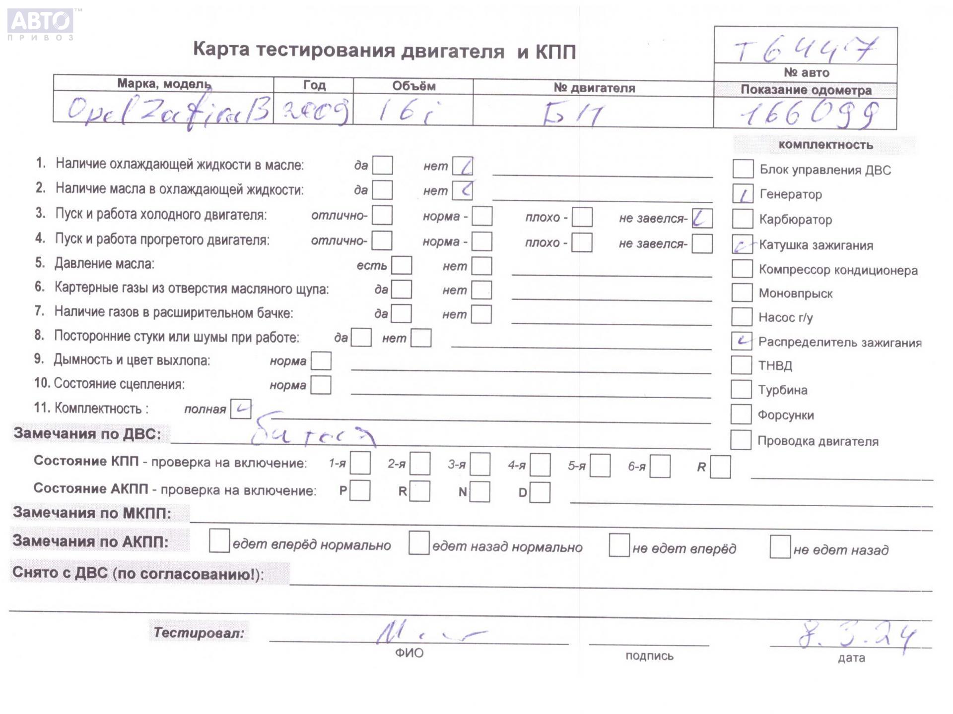 | Марка / Модель / Год: | Opel Zafira B (2004-2014) 2009 |