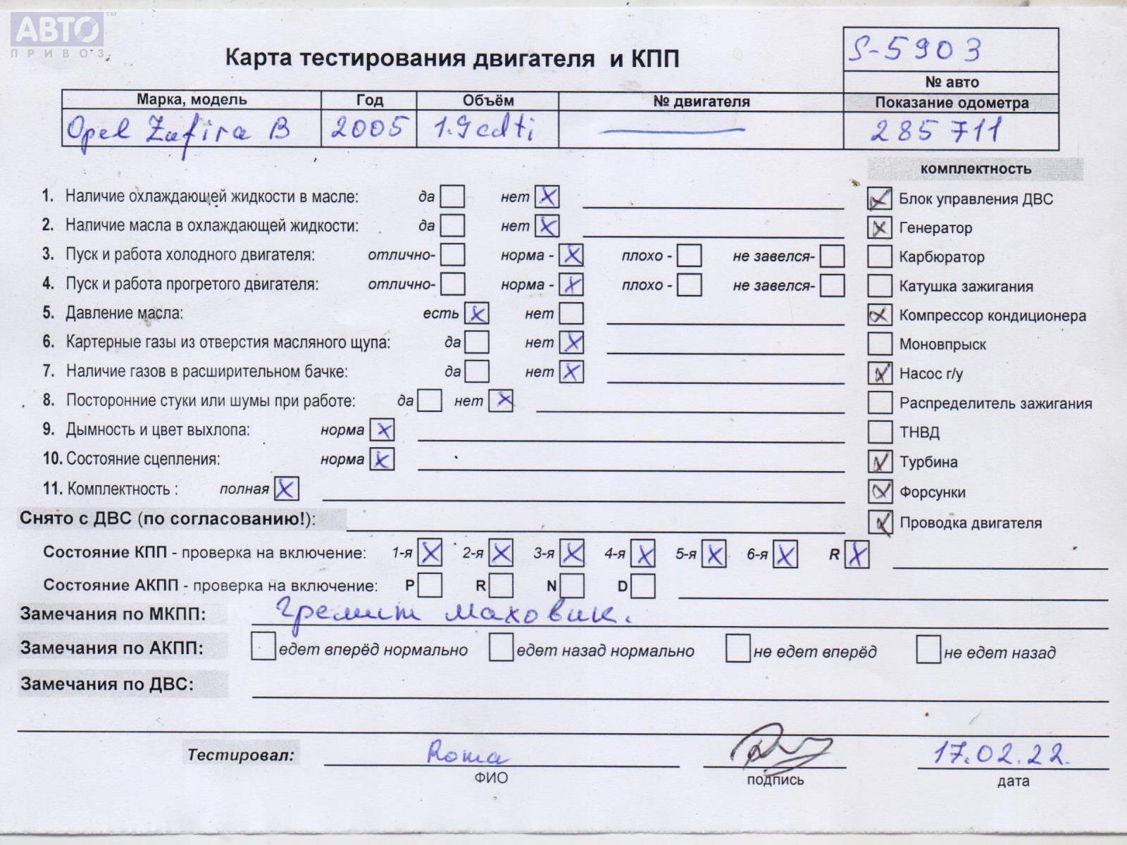| Марка / Модель / Год: | Opel Zafira B (2004-2014) 2005 |