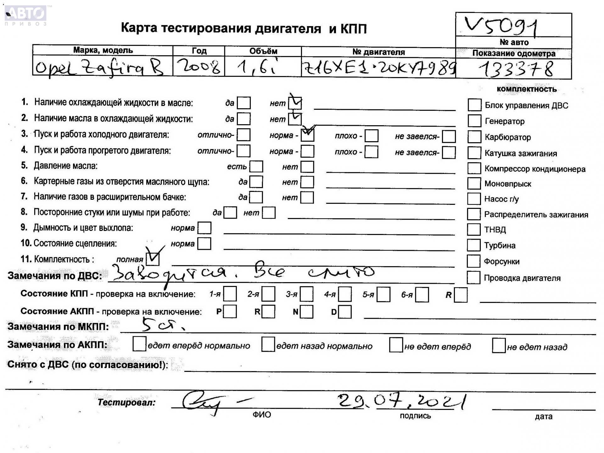 | Марка / Модель / Год: | Opel Zafira B (2004-2014) 2008 |