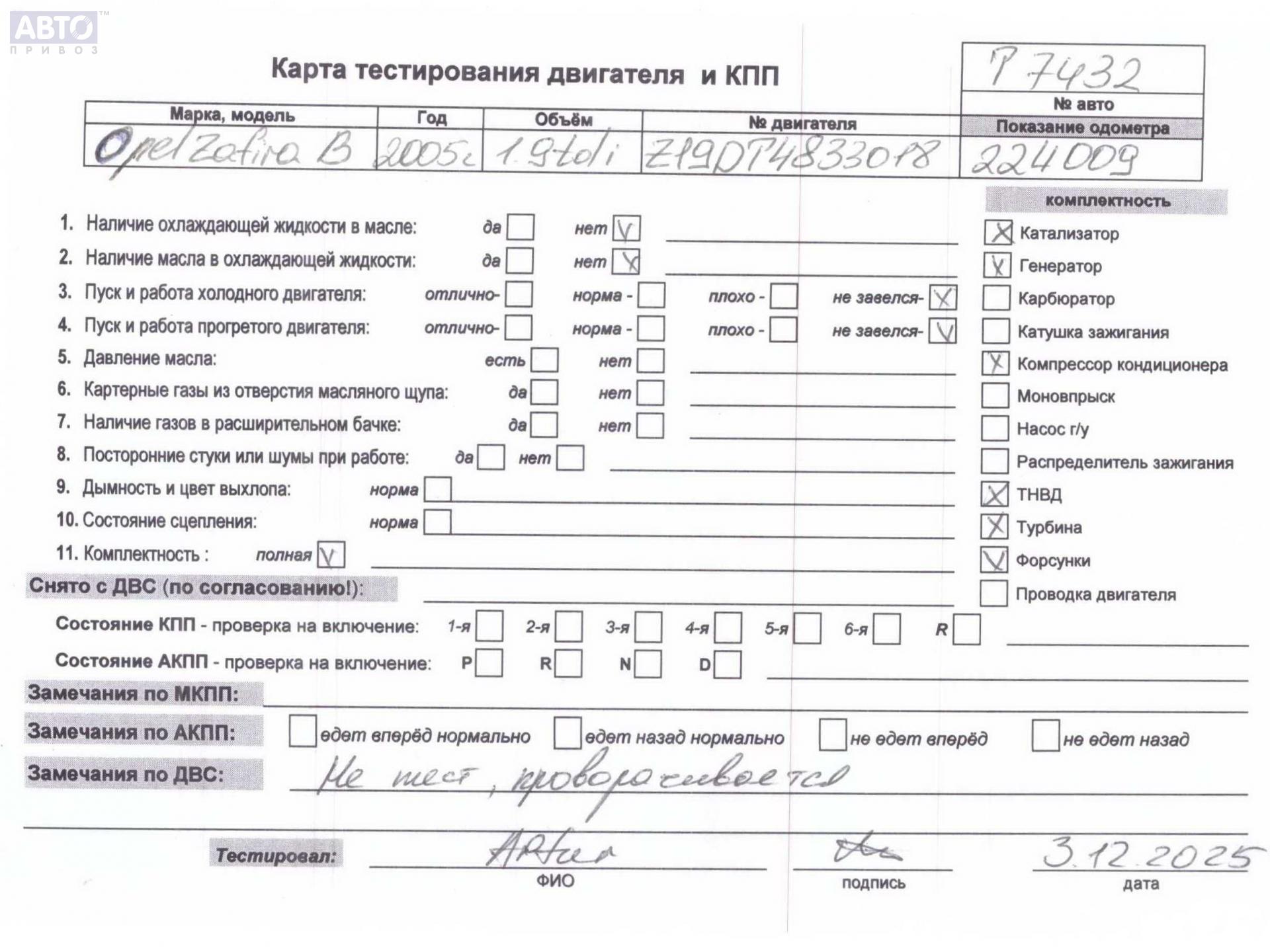 | Автомобиль / VIN: | T7432 W0L0AHM7562100015 |