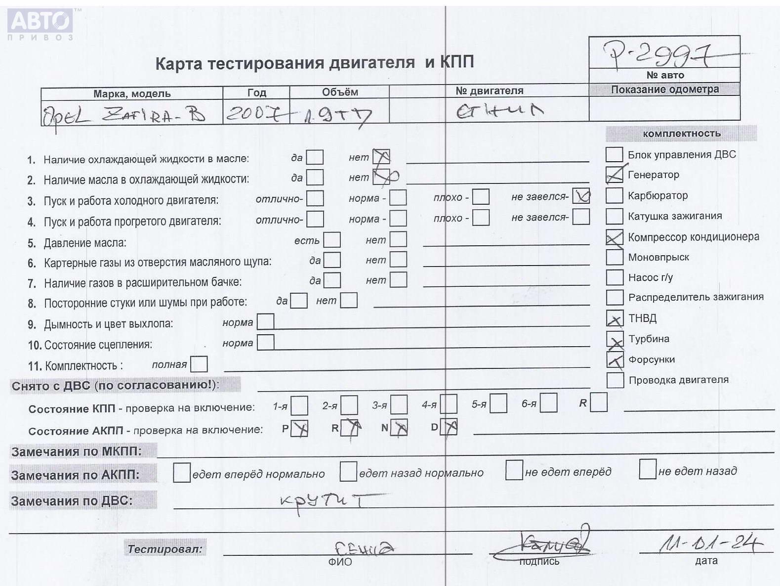 | Марка / Модель / Год: | Opel Zafira B (2004-2014) 2007 |