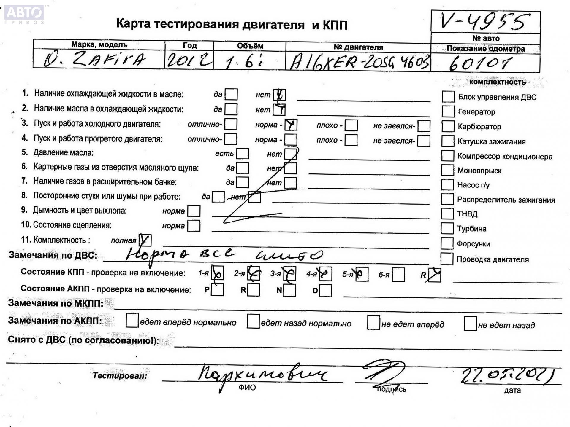 | Марка / Модель / Год: | Opel Zafira B (2004-2014) 2012 |