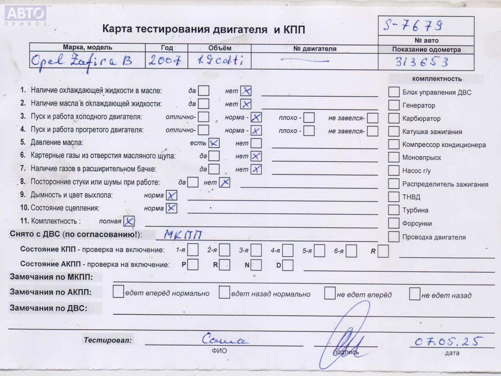 | Марка / Модель / Год: | Opel Zafira B (2004-2014) 2007 |