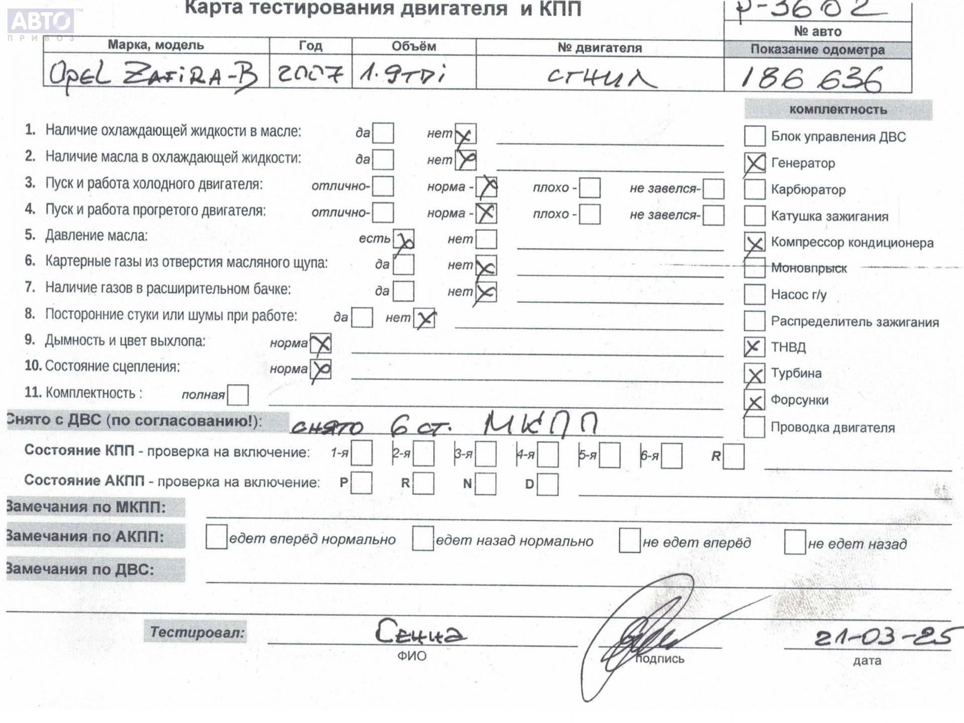 | Марка / Модель / Год: | Opel Zafira B (2004-2014) 2007 |
