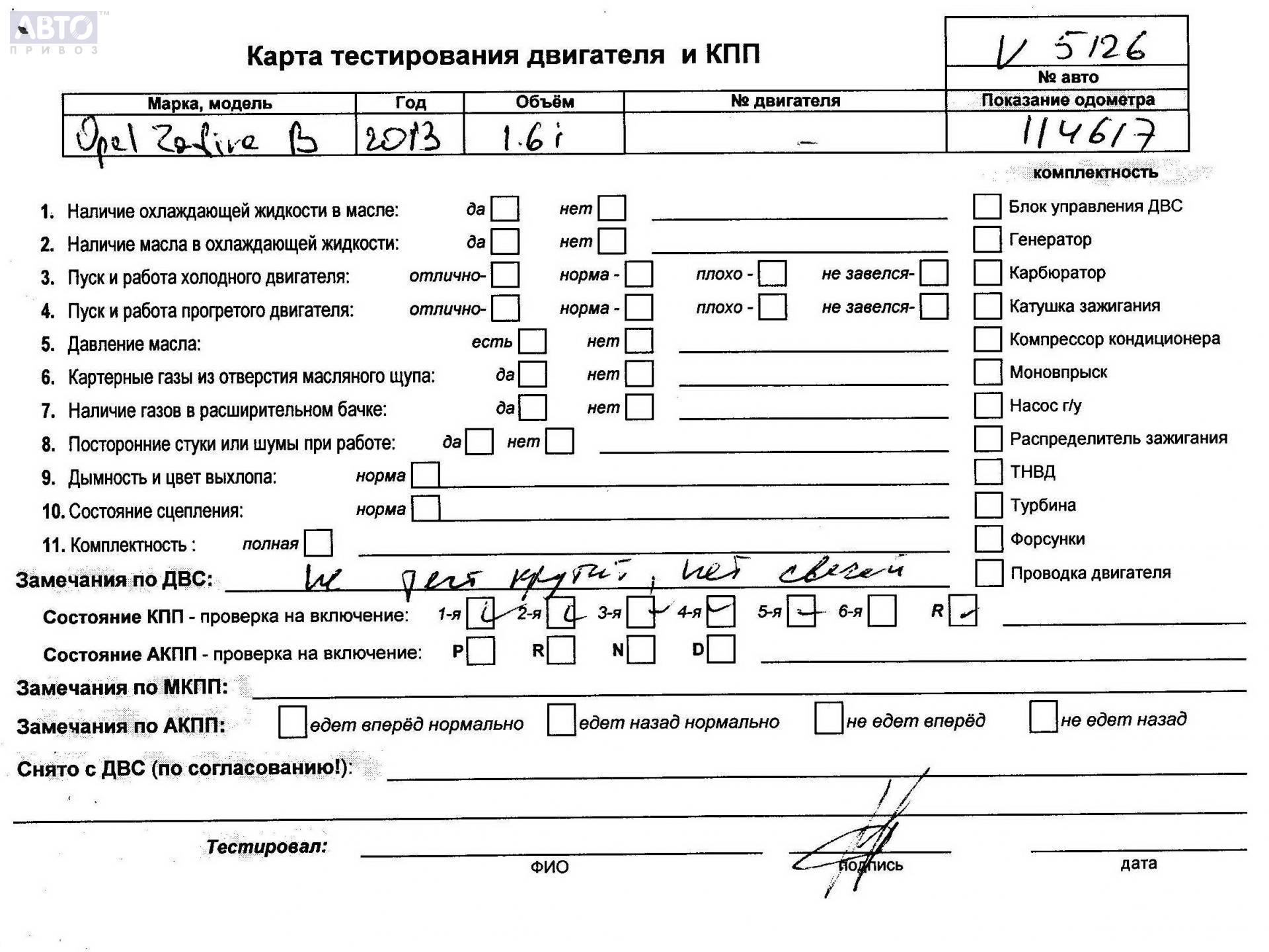 | Марка / Модель / Год: | Opel Zafira B (2004-2014) 2013 |