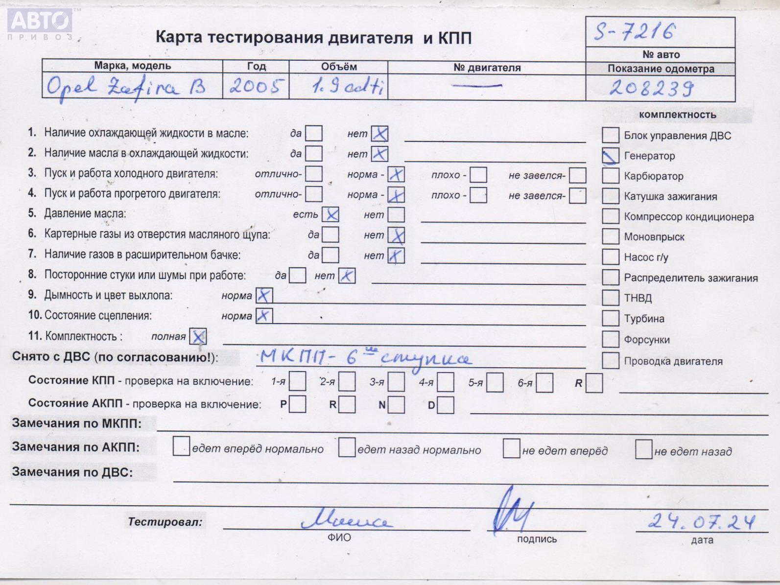| Марка / Модель / Год: | Opel Zafira B (2004-2014) 2005 |