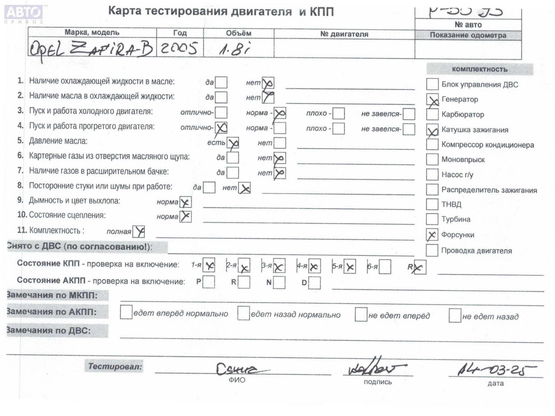 | Марка / Модель / Год: | Opel Zafira B (2004-2014) 2005 |