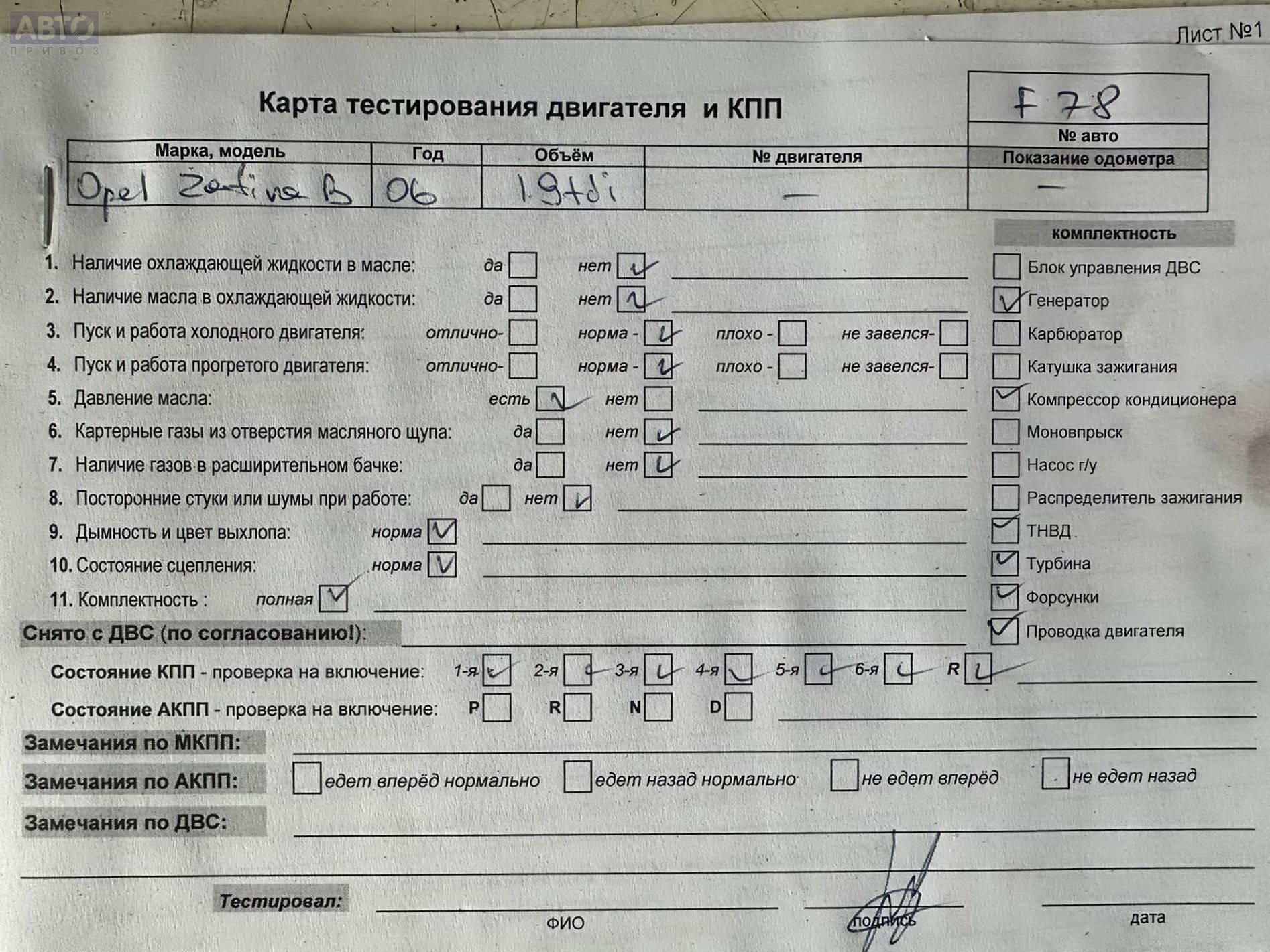| Марка / Модель / Год: | Opel Zafira B (2004-2014) 2007 |