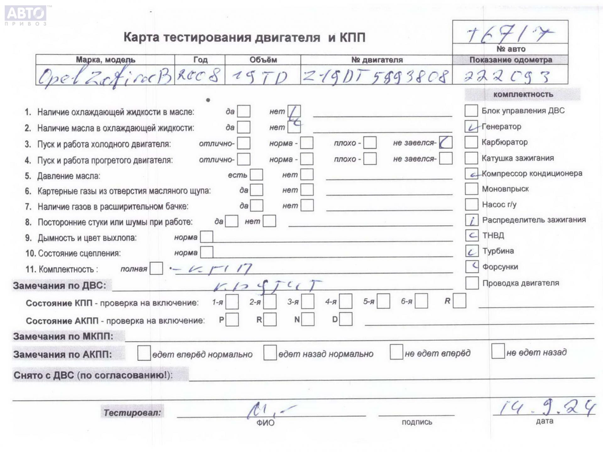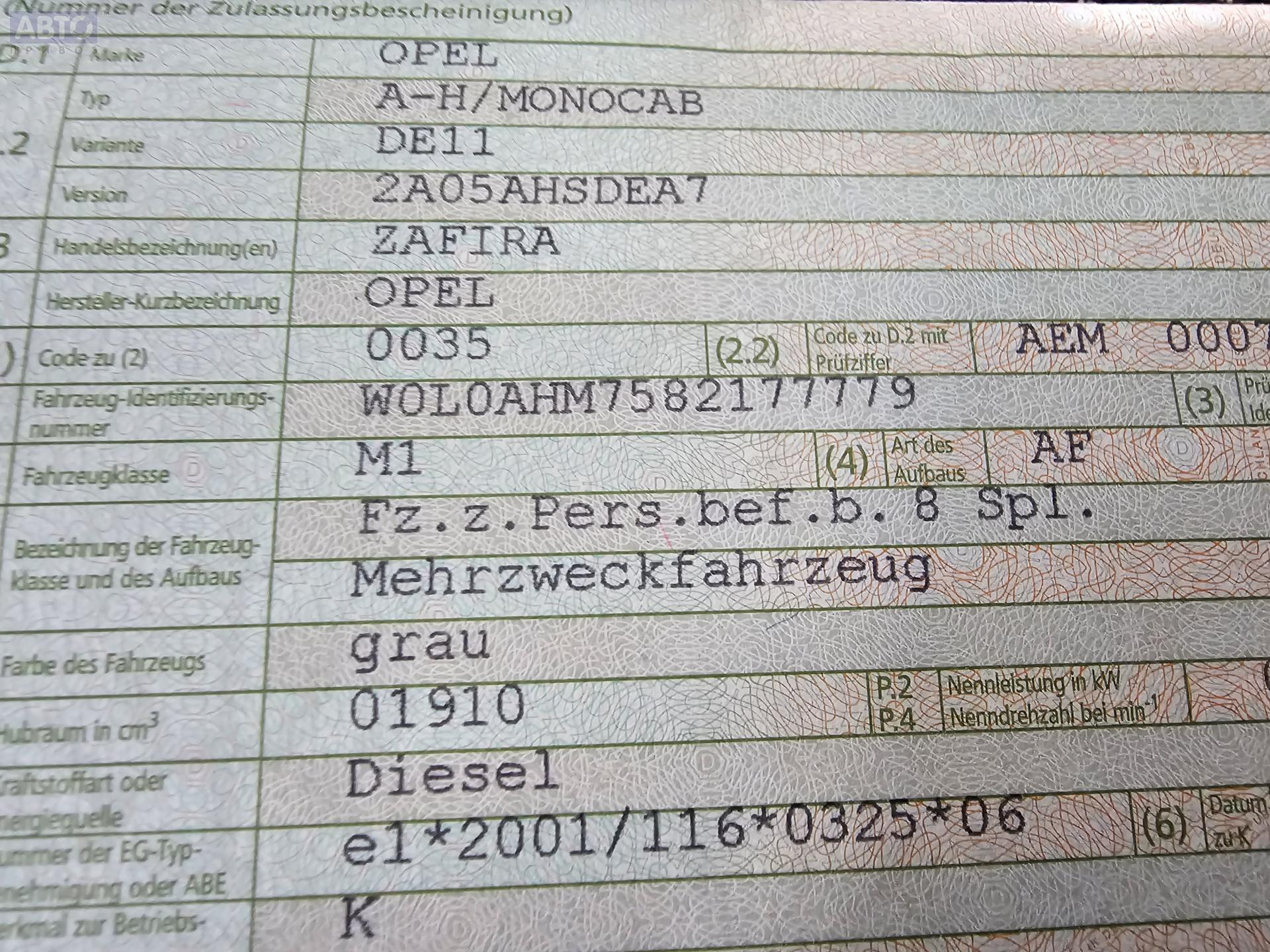 | Марка / Модель / Год: | Opel Zafira B (2004-2014) 2008 |