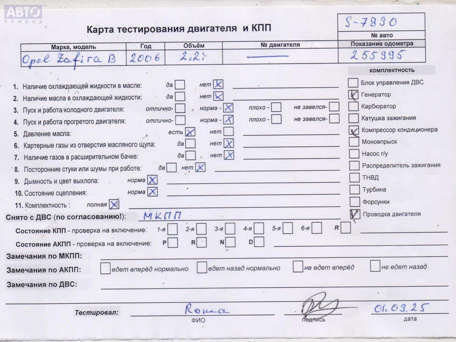 | Марка / Модель / Год: | Opel Zafira B (2004-2014) 2006 |