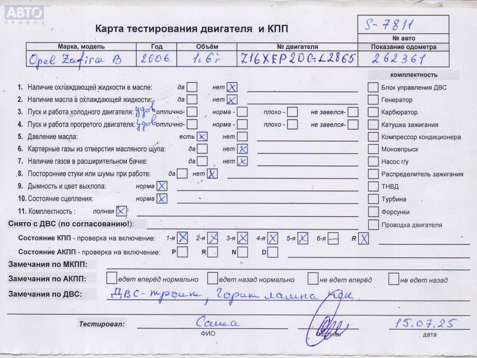 | Марка / Модель / Год: | Opel Zafira B (2004-2014) 2006 |
