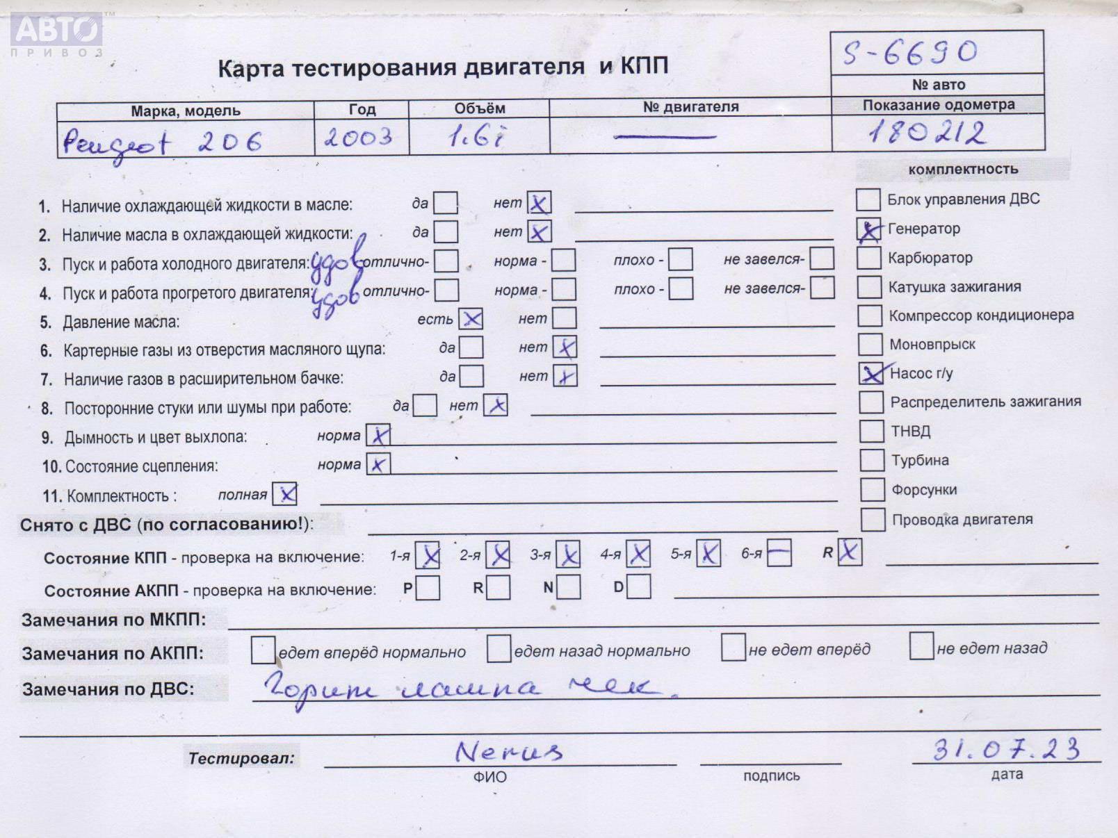 | Марка / Модель / Год: | Peugeot 206 2003 |