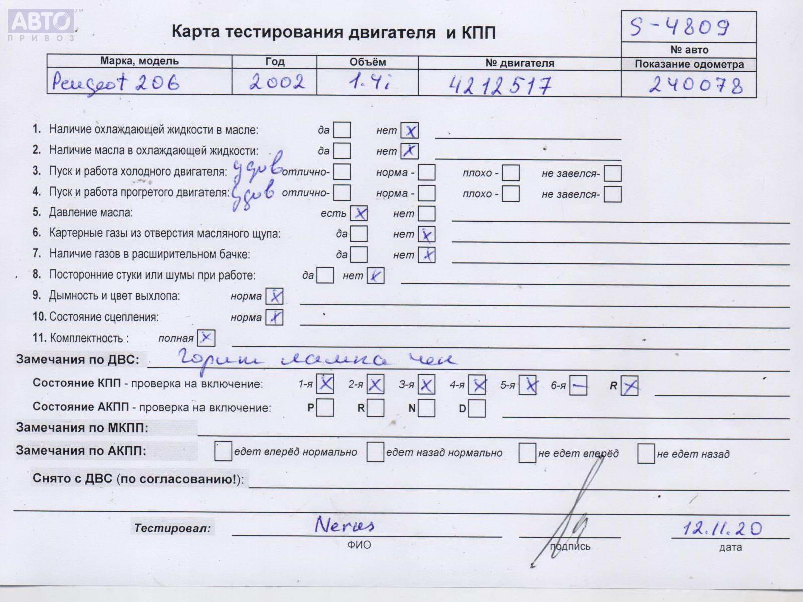 | Марка / Модель / Год: | Peugeot 206 2002 |